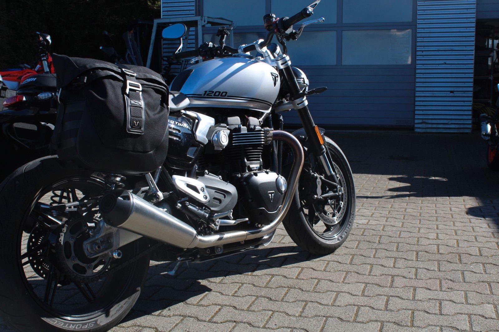 Gepflegte Speed Twin 1200 mit extrem viel Zubehör. Es ist ein Originaler Triuumph Ölwannenschutz verbaut. Zusätzlich wurden SW-Motech Seitenträger mit Taschen verbaut. Die Sitzbank ist von der Spedd Twin Rs und ein Tankpad mit Motorschutzdeckel ist ebenfalls verbaut.