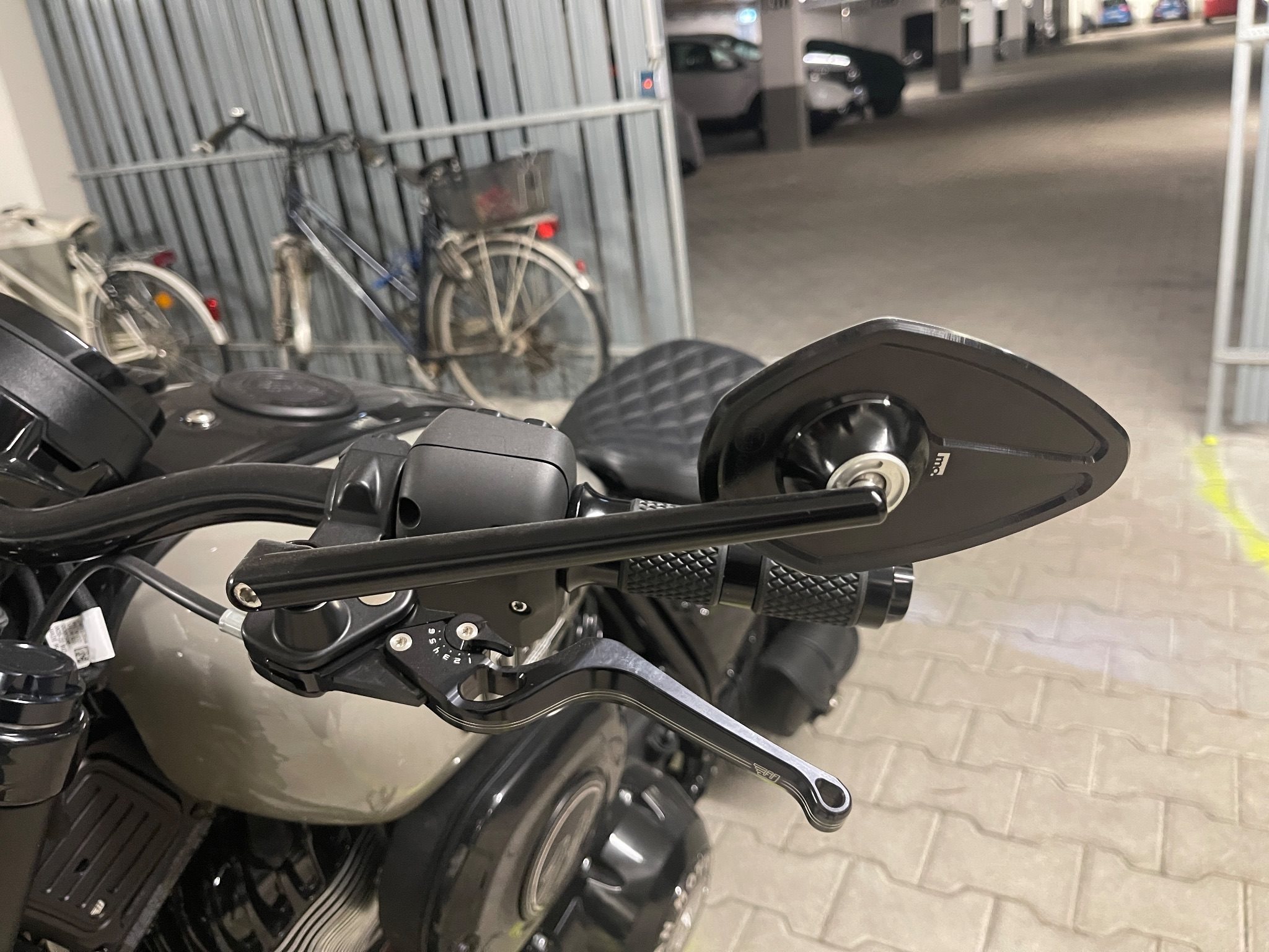 •Klemmschellen zur Spiegelbefestigung unter Brems- & Kupplungsarmatur Befestigungsbohrung für den Schalter einer Jekill&Hide Klappenauspuffanlage vorgesehen