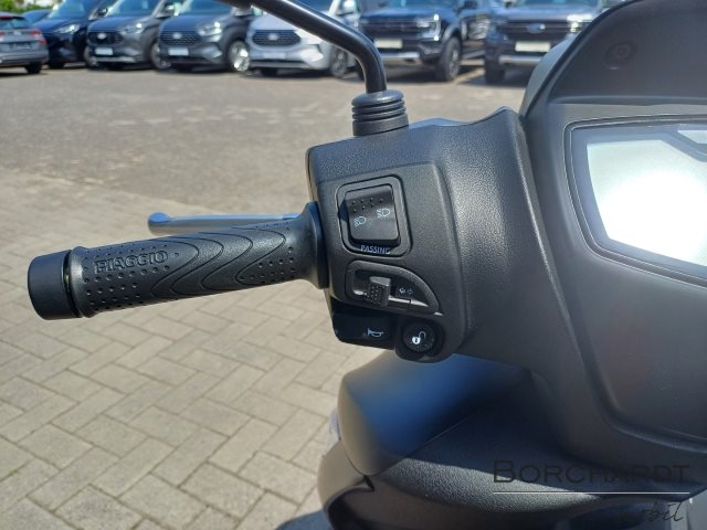 Technologie immer in BewegungDie schützende, aber dennoch schlanke Frontpartie bietet Platz für den LED-Frontscheinwerfer, der für optimale Sicht unter allen Bedingungen sorgt, sowie für das digitale LCD-Cockpit. Noch nie war es so einfach, vernetzt zu reisen: Das Piaggio MIA-System (serienmäßig in der S-Version oder als Zubehör erhältlich) ermöglicht es dir, dein Smartphone über Bluetooth mit dem Fahrzeug zu verbinden und Telefonanrufe, Sprachbefehle und Musik über das Cockpit und die Bedienelemente am Lenker zu steuern.