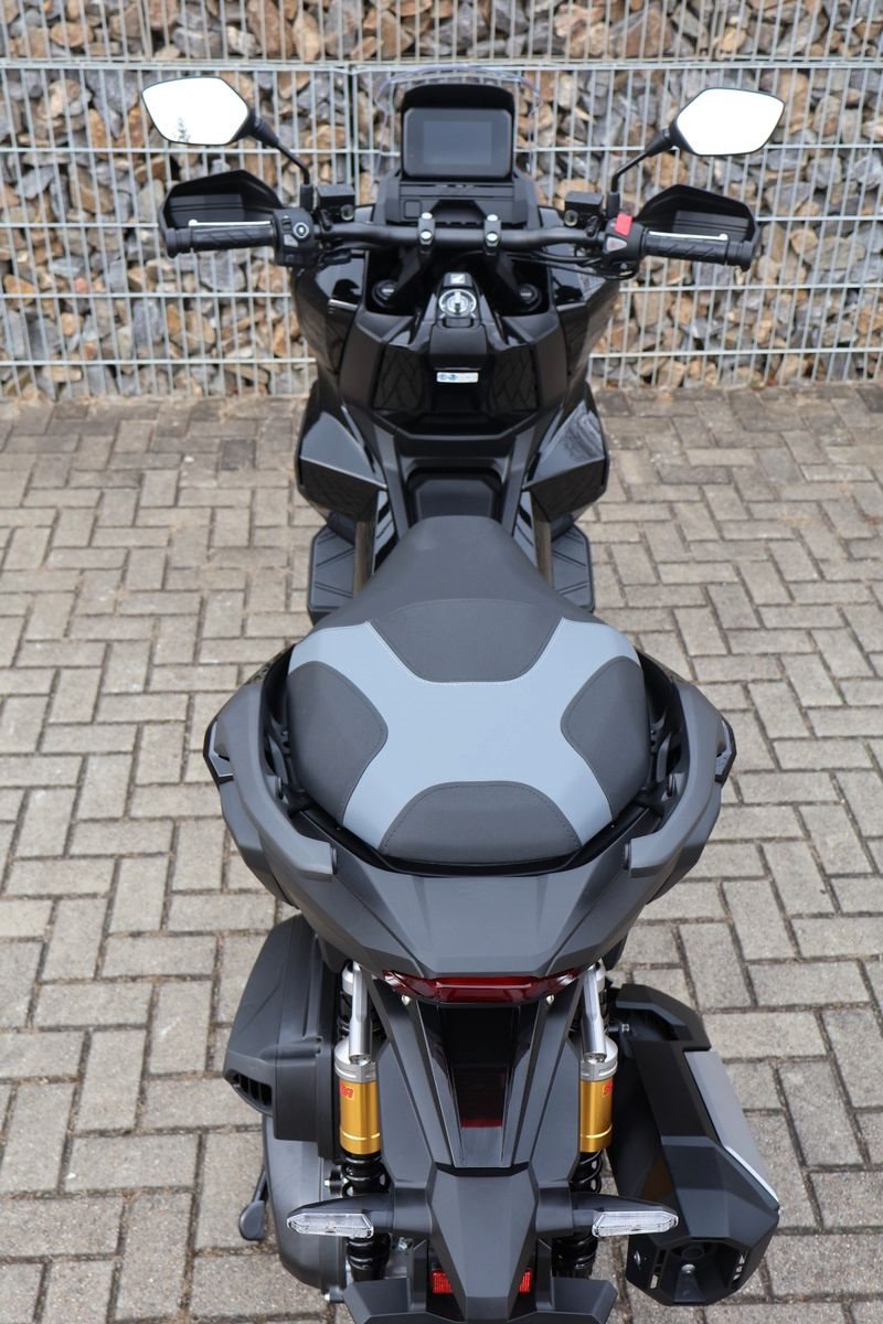 Zuversicht. Fühle es, wenn du den ADV350 Scooter fährst. Sportliche Motorleistung trifft auf ein robustes, leichtgängiges Fahrwerk und eine neue Hinterradaufhängung für mehr Komfort, um das Gelände mit Leichtigkeit zu bewältigen. Mit der automatischen Blinkerabschaltung ist der ADV350 nicht nur sicher, sondern auch funktional. Es geht aber nicht nur um Muskeln. Mit dem außerordentlich übersichtlichen 5-Zoll TFT-Cockpit hast du während der Fahrt stets alles im Blick und dank Honda RoadSync-Integration jederzeit Zugriff auf Telefonanrufe, Musik und Navigation. Der ADV350. Auf diesen Roller kannst du dich verlassen.