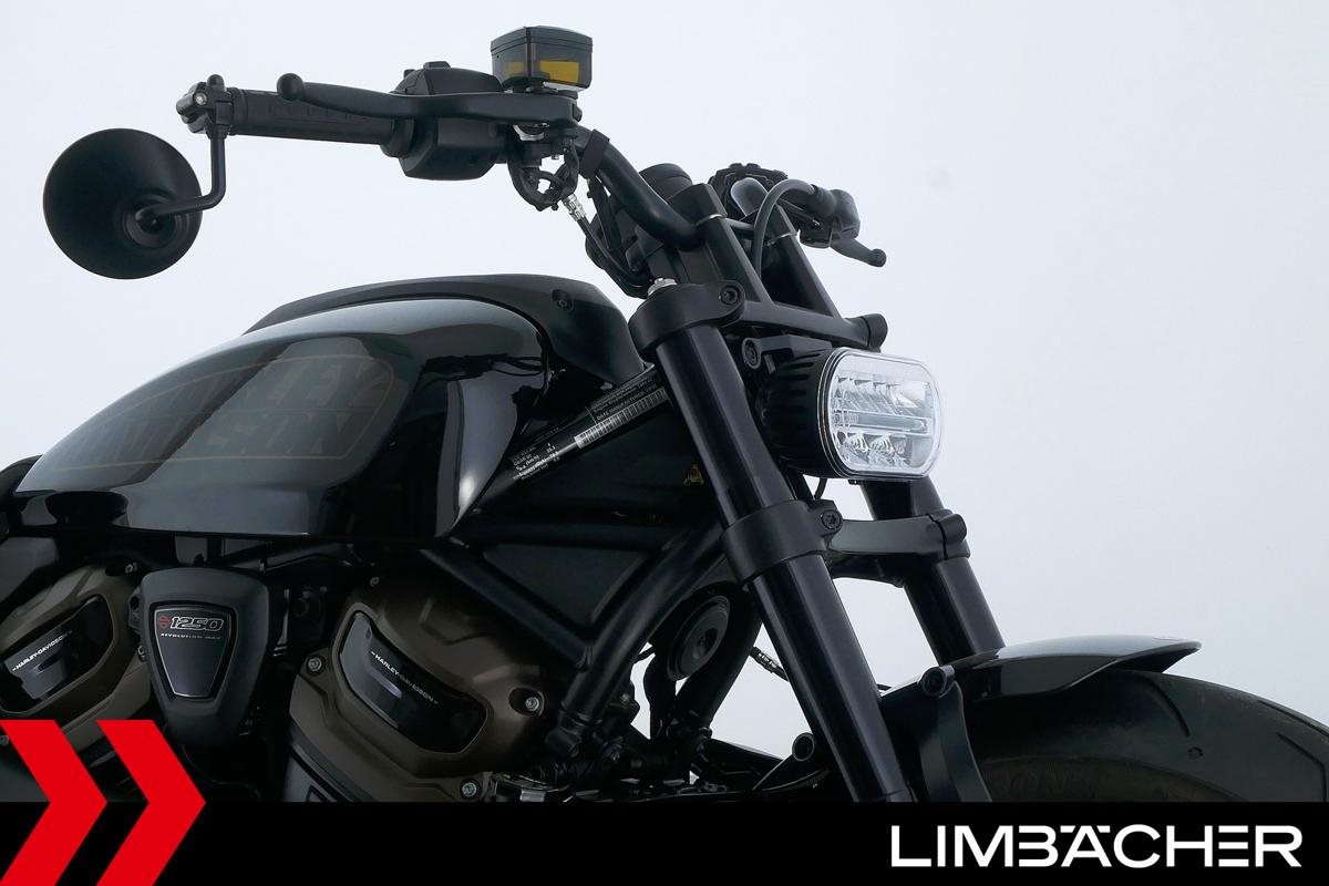 Eine scheckheftgepflegte Harley-Davidson Sportster S aus erster Hand in sehr gepflegtem Zustand u.a. mit Kennzeichenhalter seitlich sowie Lenkerend-Micro-LED-Blinkern vorne von Rick's.