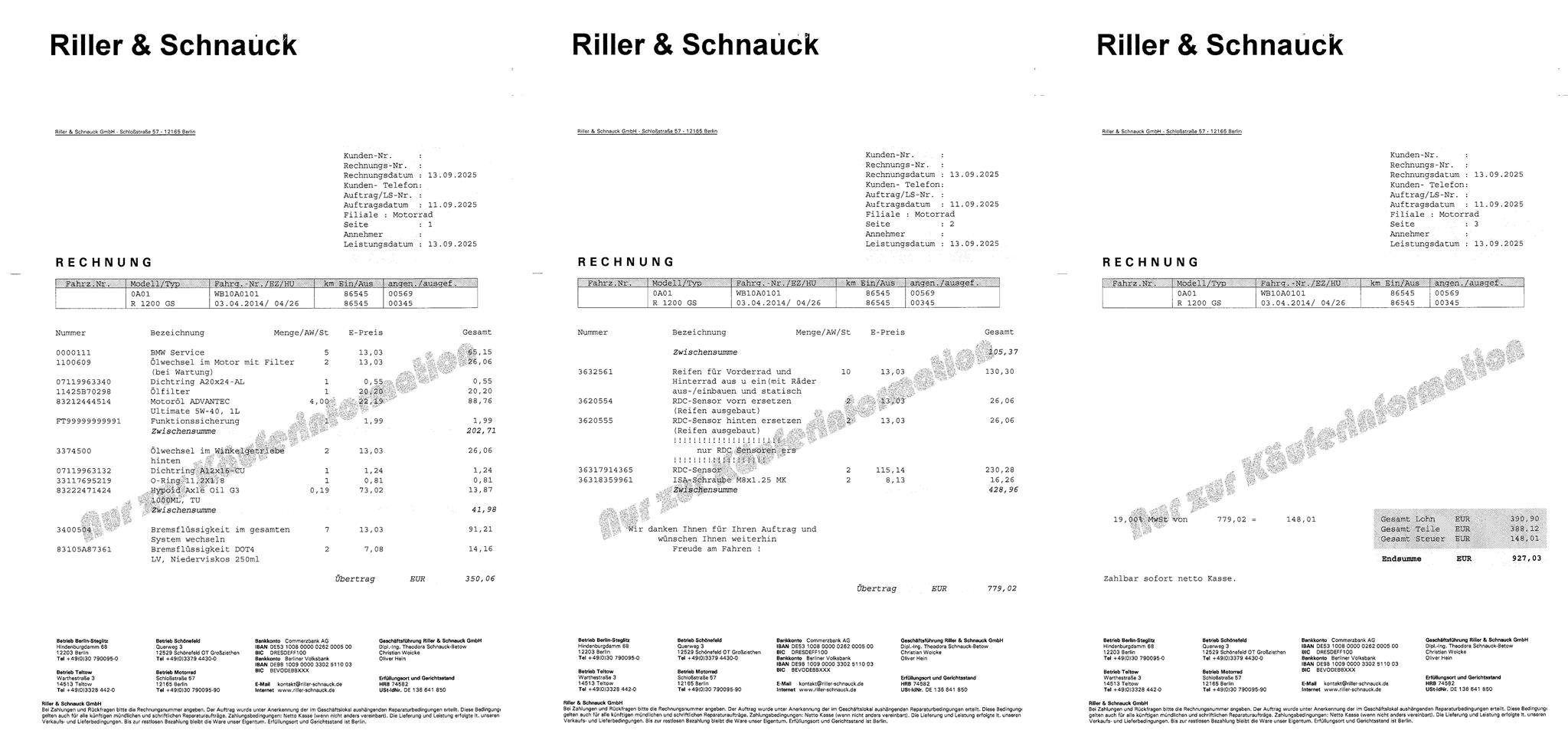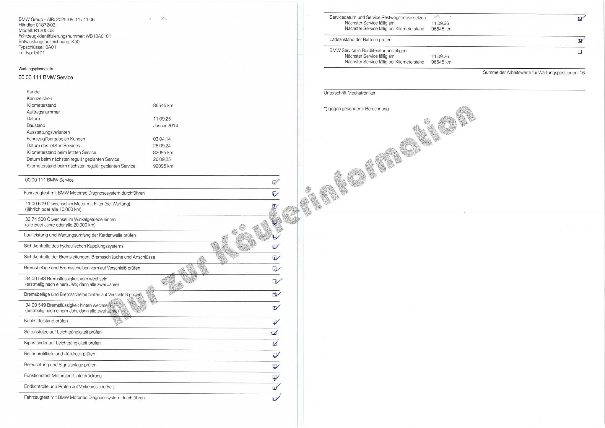Verkauft wird eine BMW R1200GS (LC) - K50 - in Racingred uni mit Erstzulassung 03.04.2014. Der Kilometerstand beträgt etwa 87.000 km und ich bin mit Erwerb des Motorrads im Oktober 2022 der zweite Besitzer. Das Motorrad befindet sich technisch wie optisch in einem hervorragenden Zustand, ist Checkheft-gepflegt, unfallfrei und kann mit einem großen Paket an Zubehör erworben werden. Der einzig bekannte optische Mangel ist eine kleine Beule im rechten Krümmerrohr. Es handelt sich um ein Garagenfahrzeug und es wurde ausschließlich für längere Touren bewegt - so z.B. im August 2024 bis hoch zum Nordkap. Die Inspektion wurde am 13.09.2025 beim BMW-Vertragshändler in Berlin durchgeführt. Im Rahmen der Inspektion wurden auch die beiden Reifendrucksensoren erneuert. Nach der Inspektion ist das Motorrad nur noch in die Garage gefahren worden und wird nicht mehr bewegt. Die nächste Hauptuntersuchung steht turnusgemäß im April 2026 an. Das Motorrad wird aber vor Übergabe noch frisch getüvt. Das Motorrad ist angemeldet als Saisonfahrzeug (03-11) und kann nach vorheriger Terminabsprache probegefahren werden. Die nächste große Tour kann nach Übernahme des Motorrads sofort losgehen!