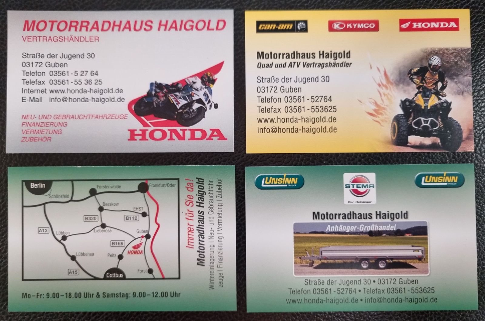 Wir sind Honda-Vertragshändler und stehen natürlich mit unserem Namen für die Qualität der Motorräder ein (egal ob Honda oder Fremdfabrikate). Sie können sich gern live beeindrucken lassen. Bei Anmeldung wird eine Probefahrt natürlich auch möglich sein.