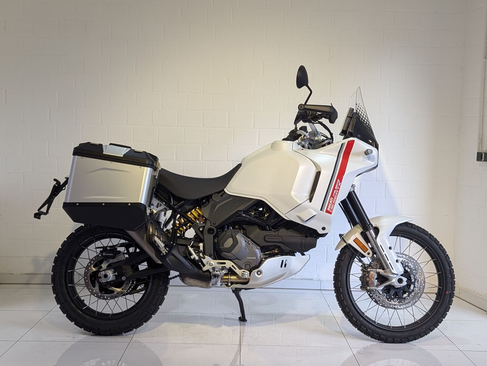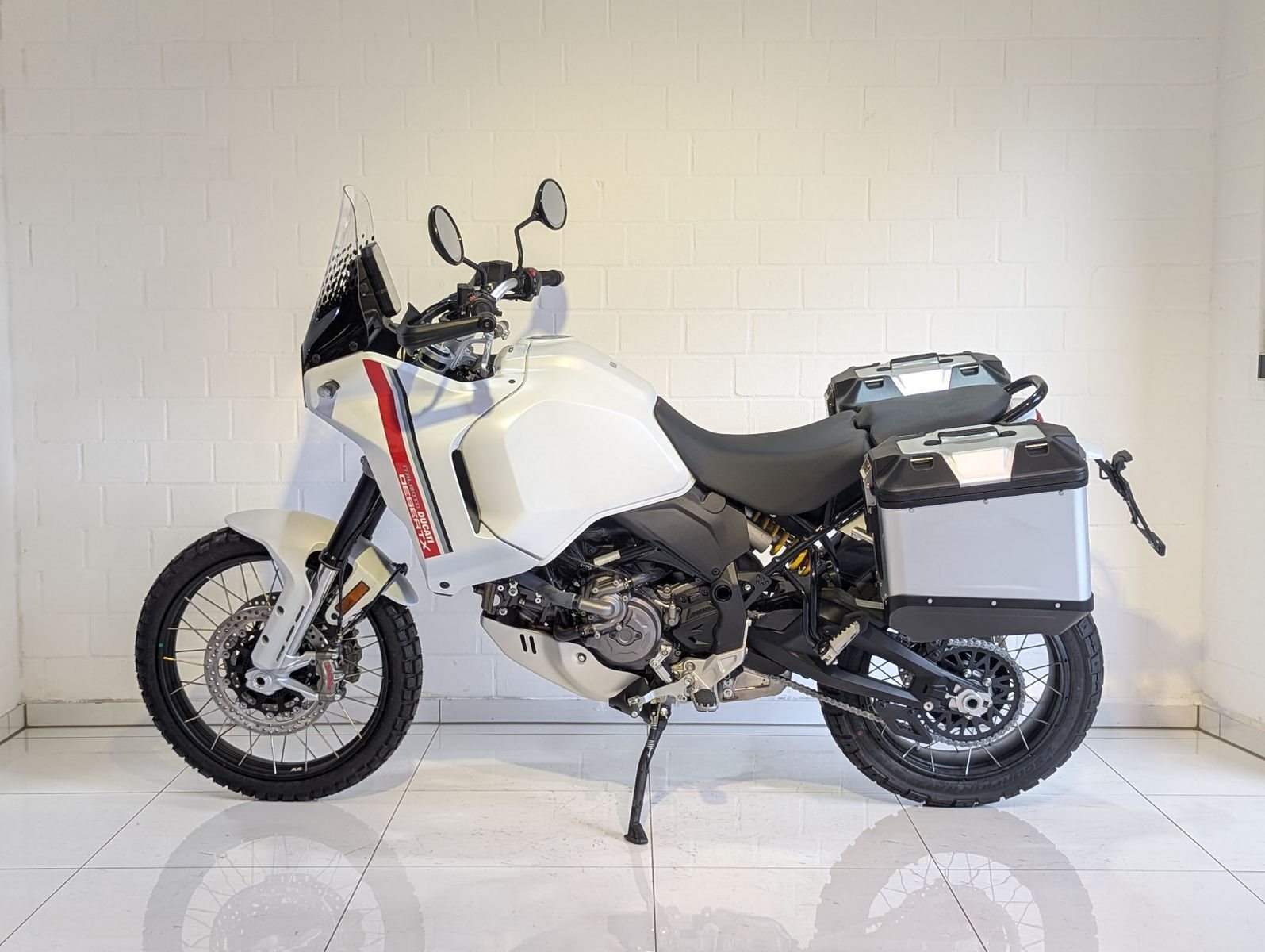 Abenteuer. Leistung. Leidenschaft. Die Charakteristika der DesertX lassen keine Zweifel an der starken Offroad-Orientierung aufkommen: Wüstendünen, schmale Pfade, Schotterstraßen und bergige Serpentinen. Mit der DesertX kennen Reiseträume keine Grenzen mehr. Die DesertX ist mit einem 21-Zoll-Vorderrad und einem 18-Zoll-Hinterrad ausgestattet und wurde mit dem Ziel entwickelt, auch die anspruchsvollsten Offroad-Einsätze zu meistern. Durch die speziell auf den Einsatz im Gelände ausgerichtete Entwicklung, gepaart mit dem Straßen-Know-how von Ducati, entstand ein reaktionsschnelles, leicht zu fahrendes Motorrad, das sich auf jeder Strecke und auf jedem Asphalt wohlfühlt.