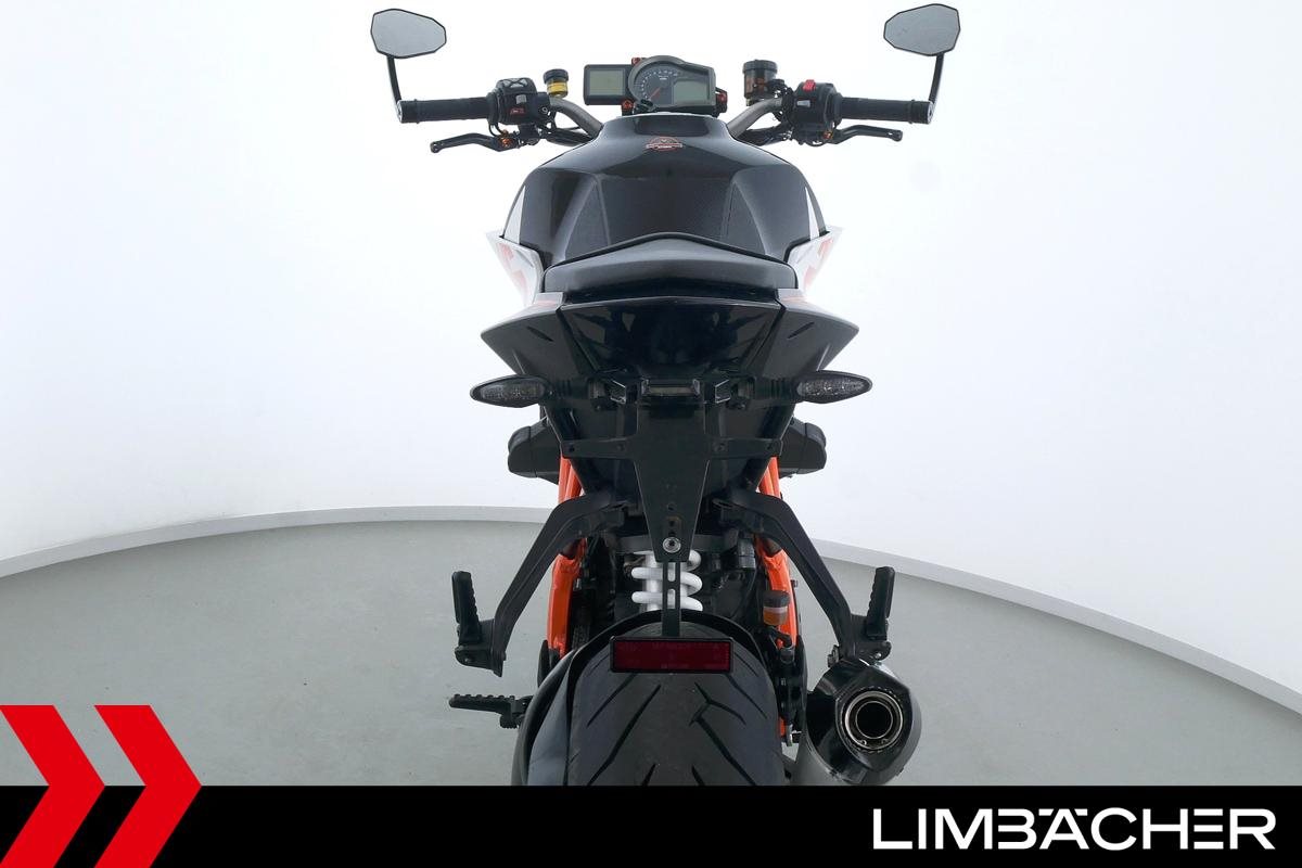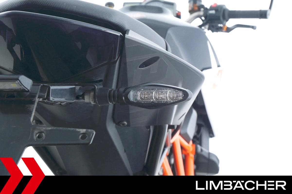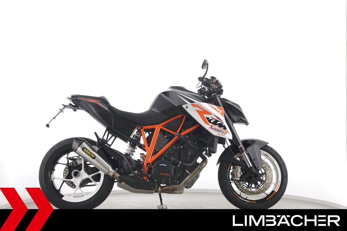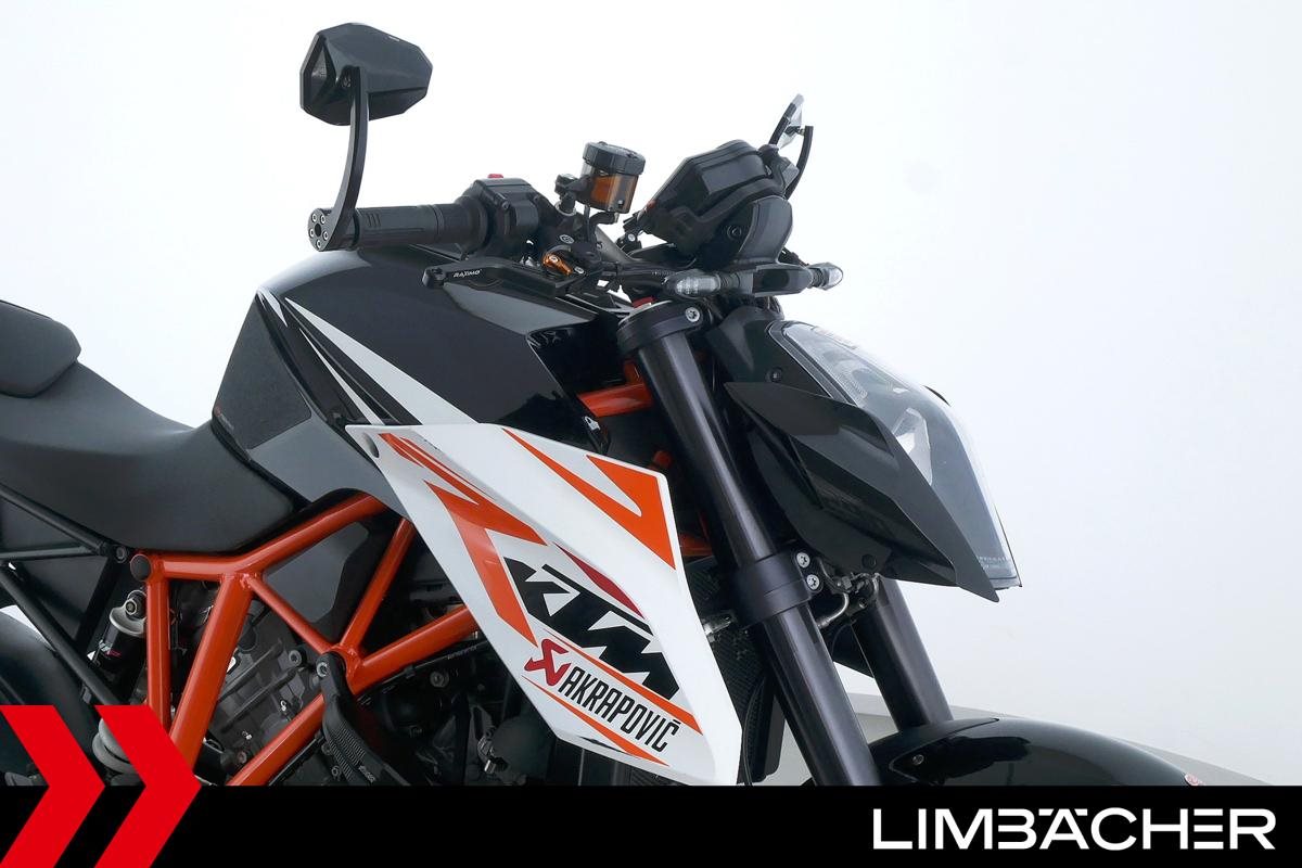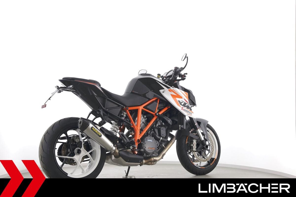 Eine scheckheftgepflegte KTM 1290 Super Duke R in gepflegtem Zustand u.a. mit Arrow-Endschalldämpfer sowie kurzem Kennzeichenhalter.