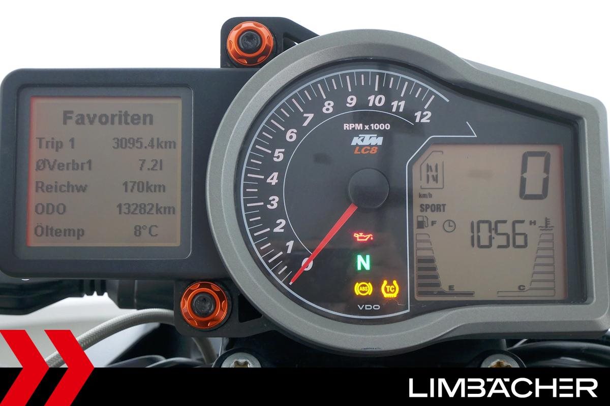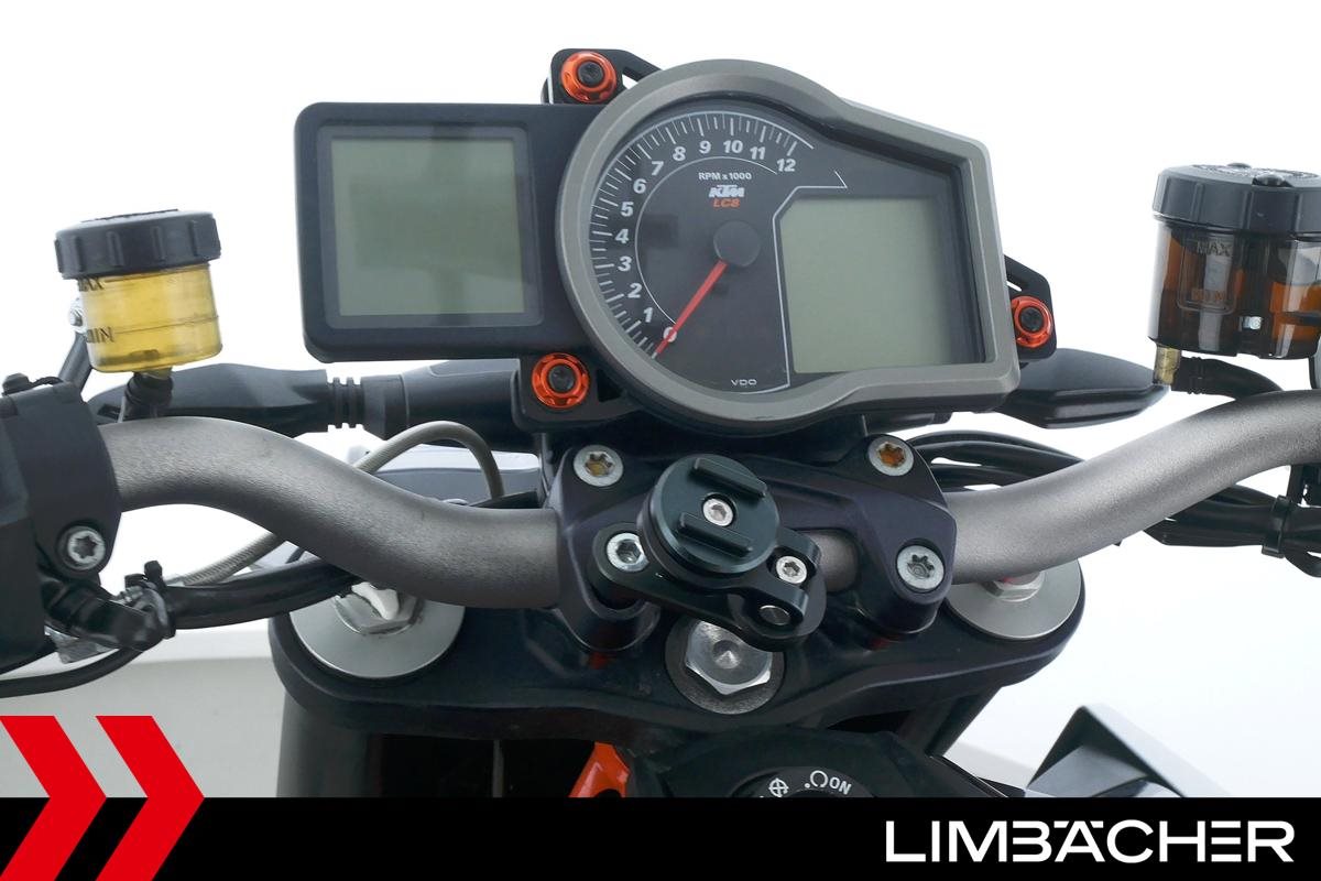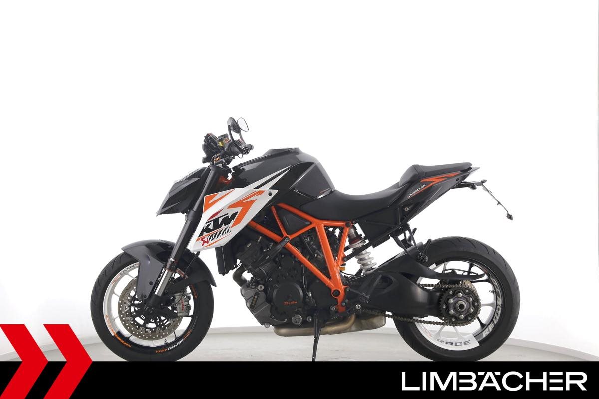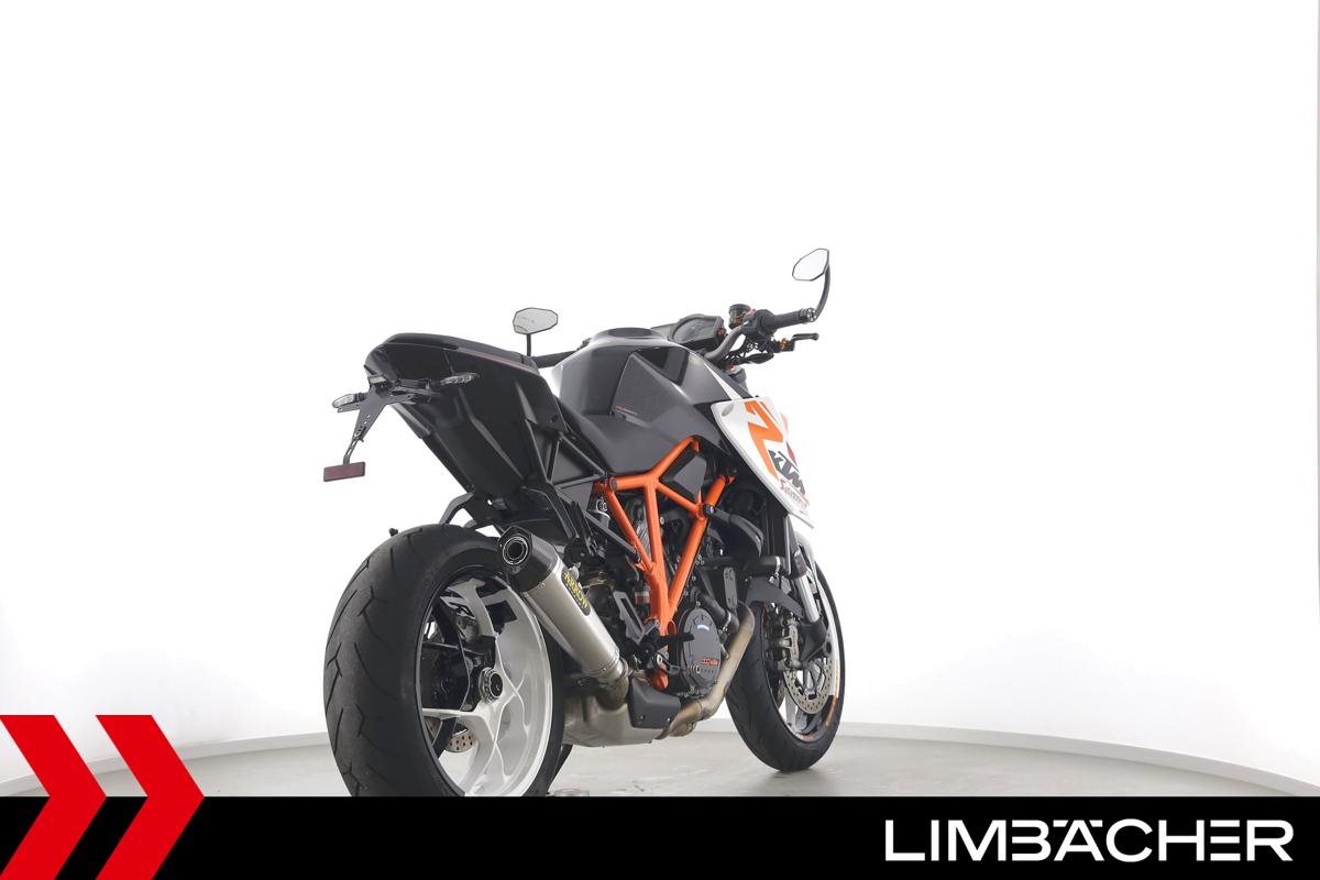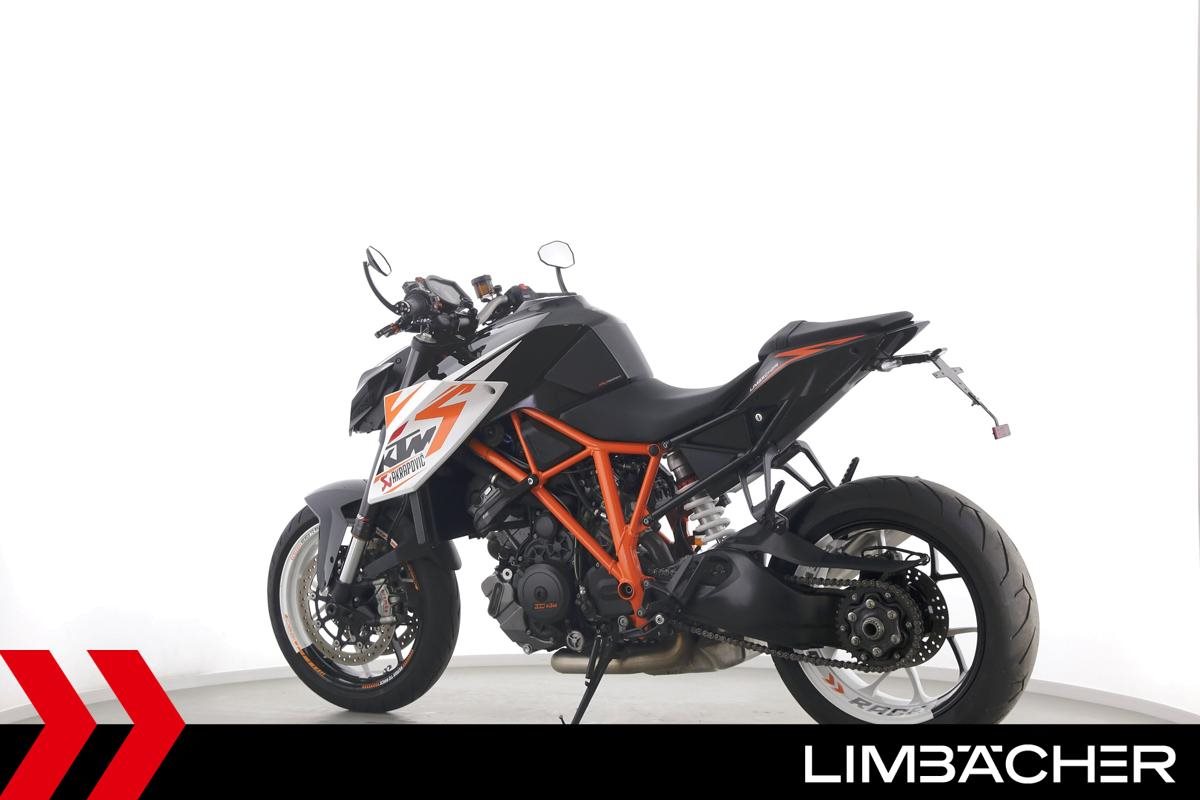 Eine scheckheftgepflegte KTM 1290 Super Duke R in gepflegtem Zustand u.a. mit Arrow-Endschalldämpfer sowie kurzem Kennzeichenhalter.