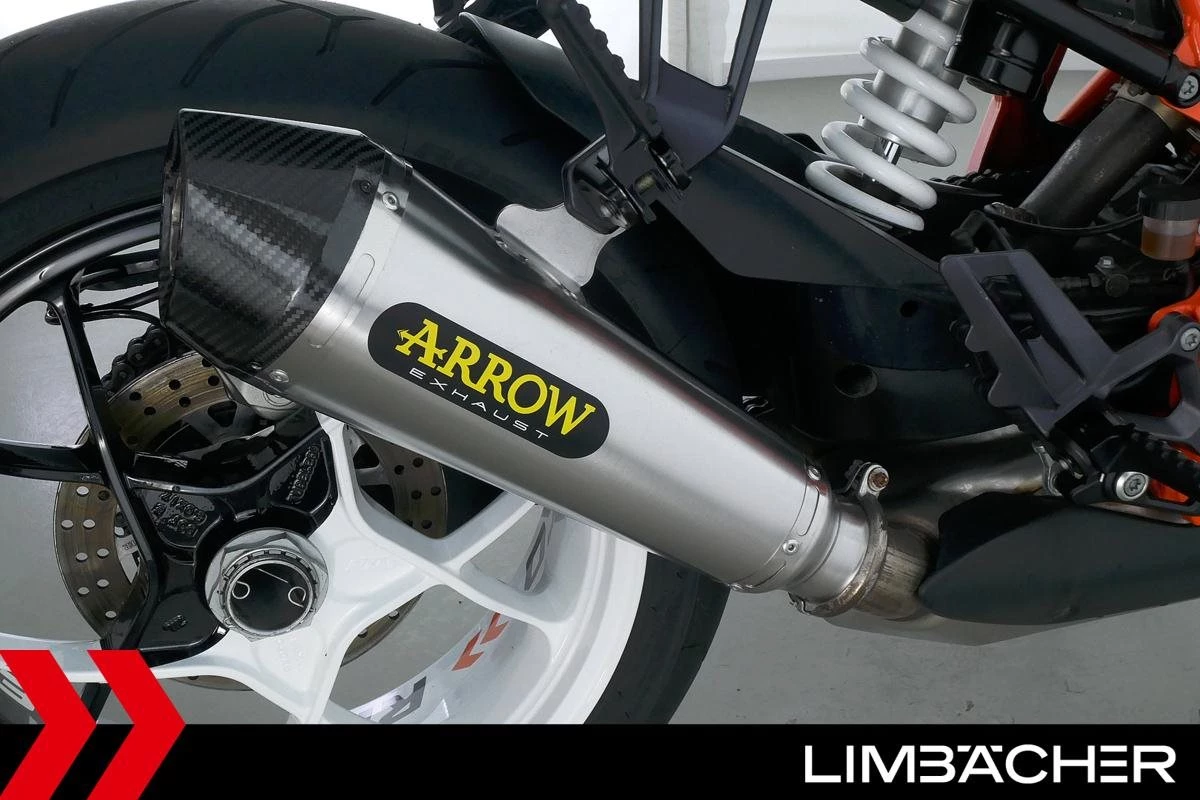 Eine scheckheftgepflegte KTM 1290 Super Duke R in gepflegtem Zustand u.a. mit Arrow-Endschalldämpfer sowie kurzem Kennzeichenhalter.