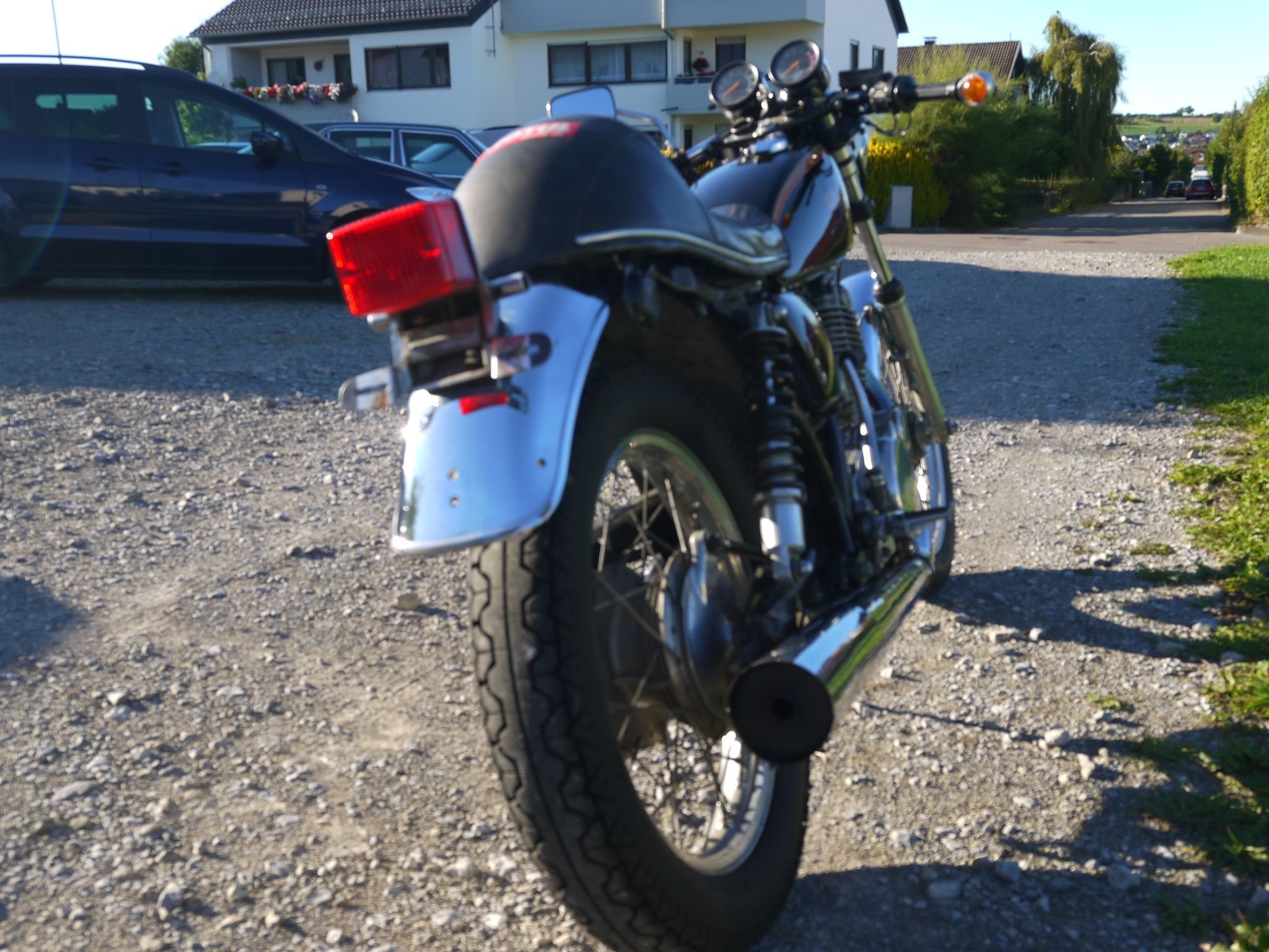 M-Lenker + Höckersitzbank + zurückverlegte Fussrasten + verstellbare FAC Stossdämpfer hinten + Auspuff + Ochsenaugenblinker