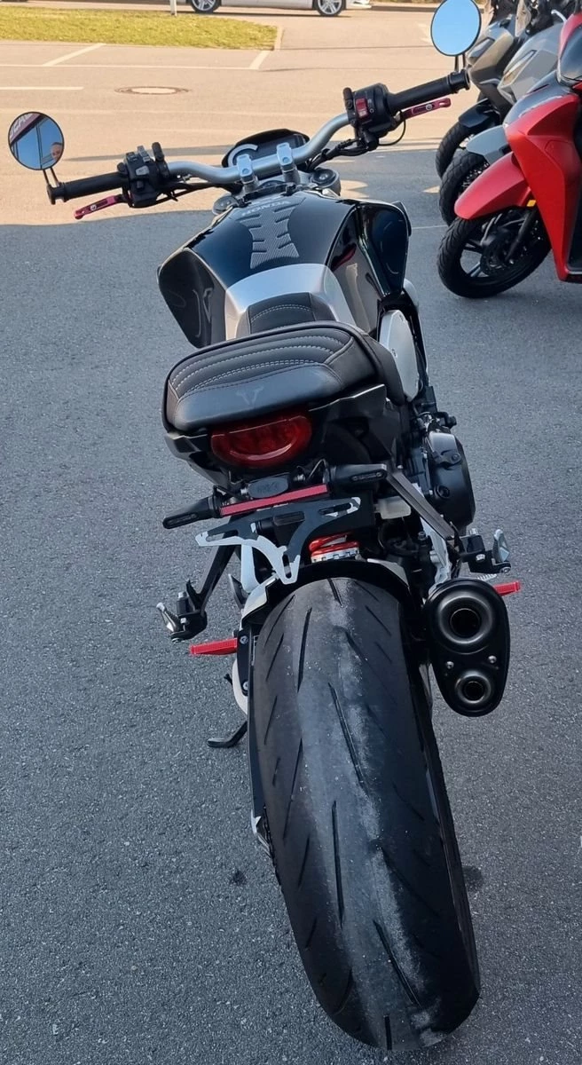 kurzer Kennzeichenhalter, Griffheizung,Lenkerendenspiegel, Bugspoiler, Kühlerschutz, verstellbare Brems-/Kupplungshebel, Lenkererhöhung, höhere Komfortsitzbank, Austauschfussrasten........