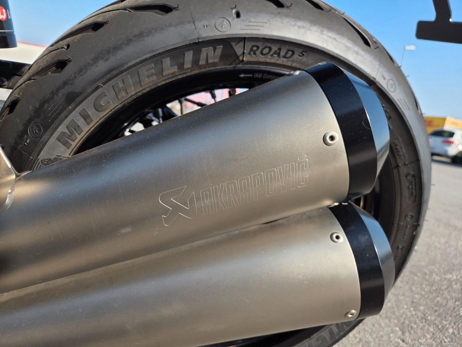 Akrapovic Auspuff, Wilbers Federbeine, Wunderlich Sitzbank, diverse Teile Pulver beschichtet, Sturzbügel, Flyscreen, Lenkererhöhung, kurzer Kennzeichenhalter, Miniblinker, Rizoma Spiegel