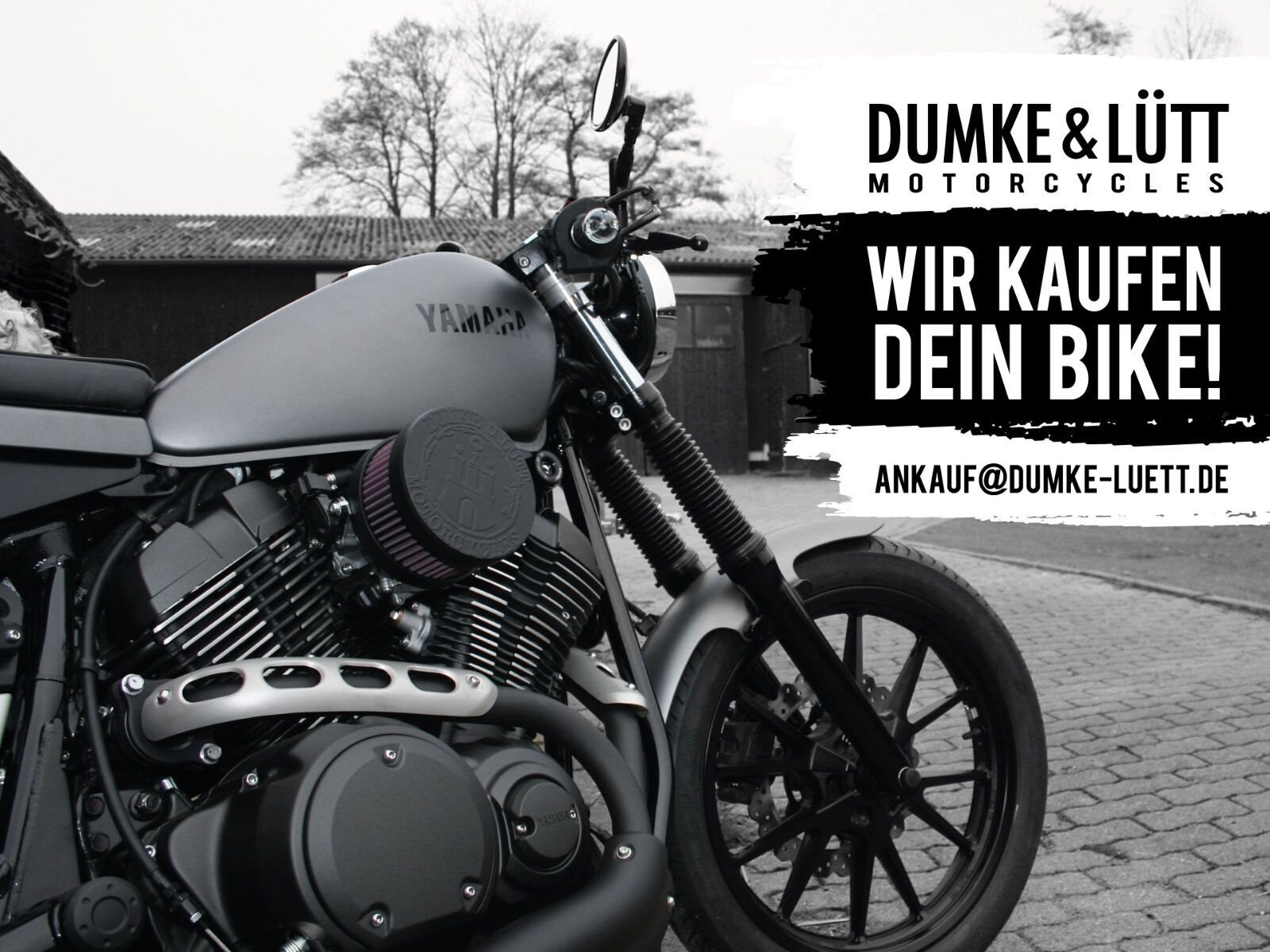 Moin! Wir sind Dumke u. Lütt, Euer offizieller Hamburger Vertragshändler für Suzuki & Yamaha. Seit über 45 Jahren (seit 1976) sind wir auf den Straßen Hamburgs zu Hause. Wir teilen gerne unsere Lebensfreude und Begeisterung für Motorräder und Roller mit Euch. Daher laden wir Euch in unsere rund 1.000 qm große Welt bei uns in Hamburg (Duvenstedt) ein. Von Montag bis Samstag stehen Euch unsere Türen offen. Mehr über uns und die Community findet Ihr unter www.dumke-luett.de. Ihr wollt mit uns schnacken? Dann ruft an unter 040/607697-0 oder schreibt eine E-mail an info@dumke-luett.de
