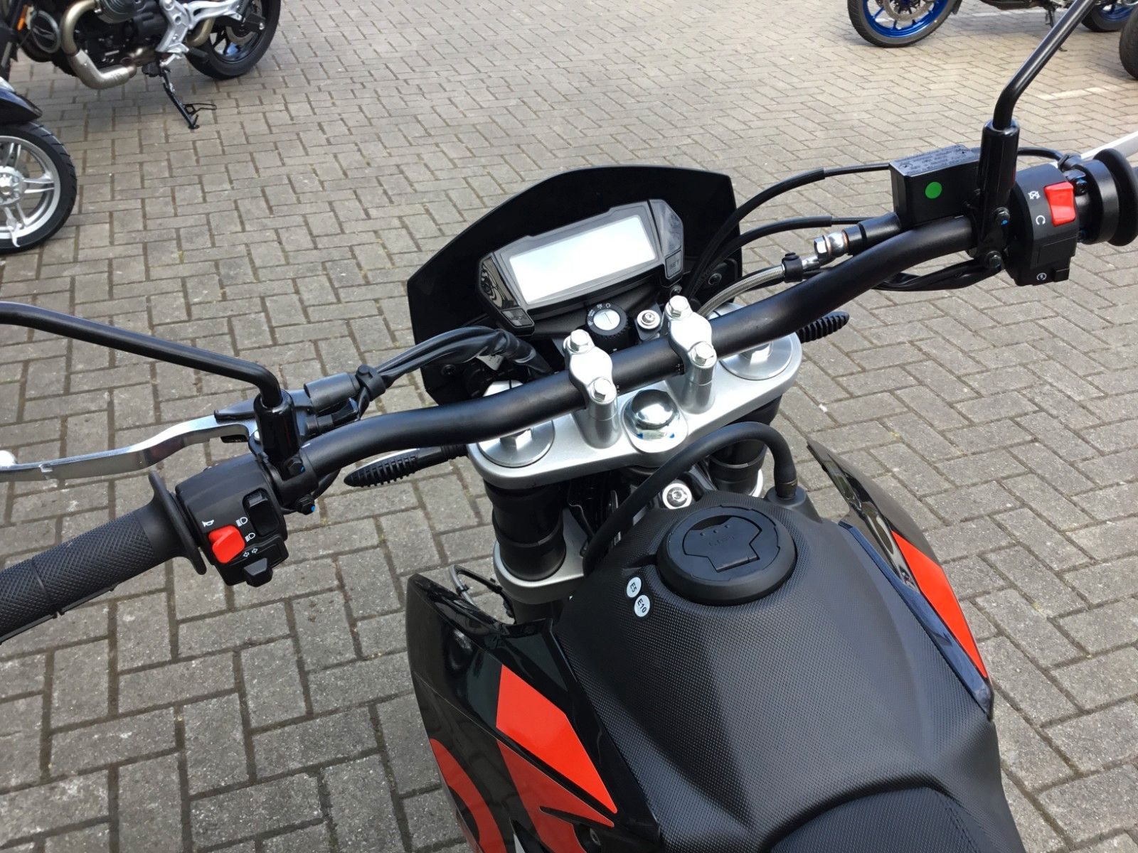 - Mutig und intuitiv Das kompakte, digitale Farb-Display liefert während der Fahrt klare und detaillierte Daten über dein Motorrad. Die Front zeigt den unverkennbaren Aprilia Look mit einer dreifachen LED-Lichteinheit, die dem urbanen Motard-Stil entspricht. Das geräumige Fach unter der Sitzbank ist für einen USB-Anschluss (als optionales Extra erhältlich) ausgelegt, sodass du dein Smartphone immer aufladen können.