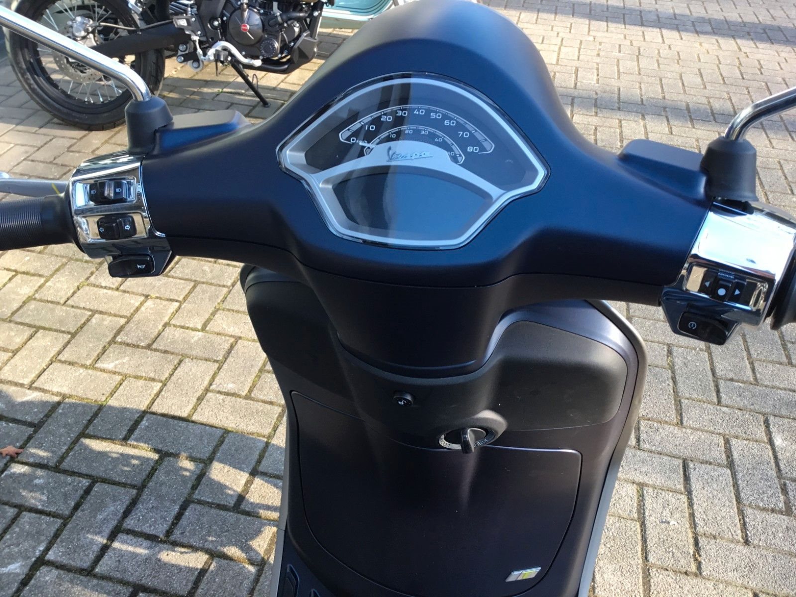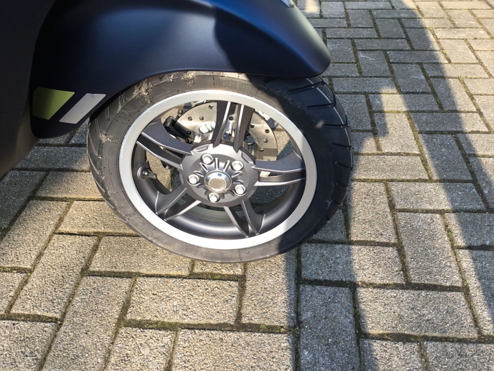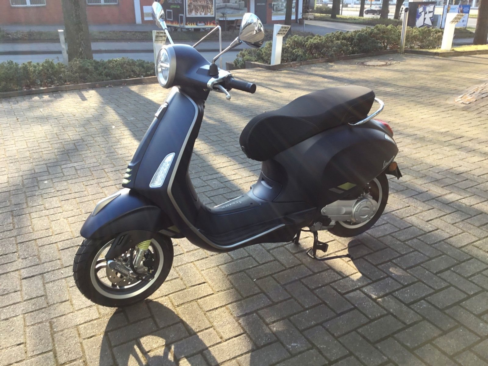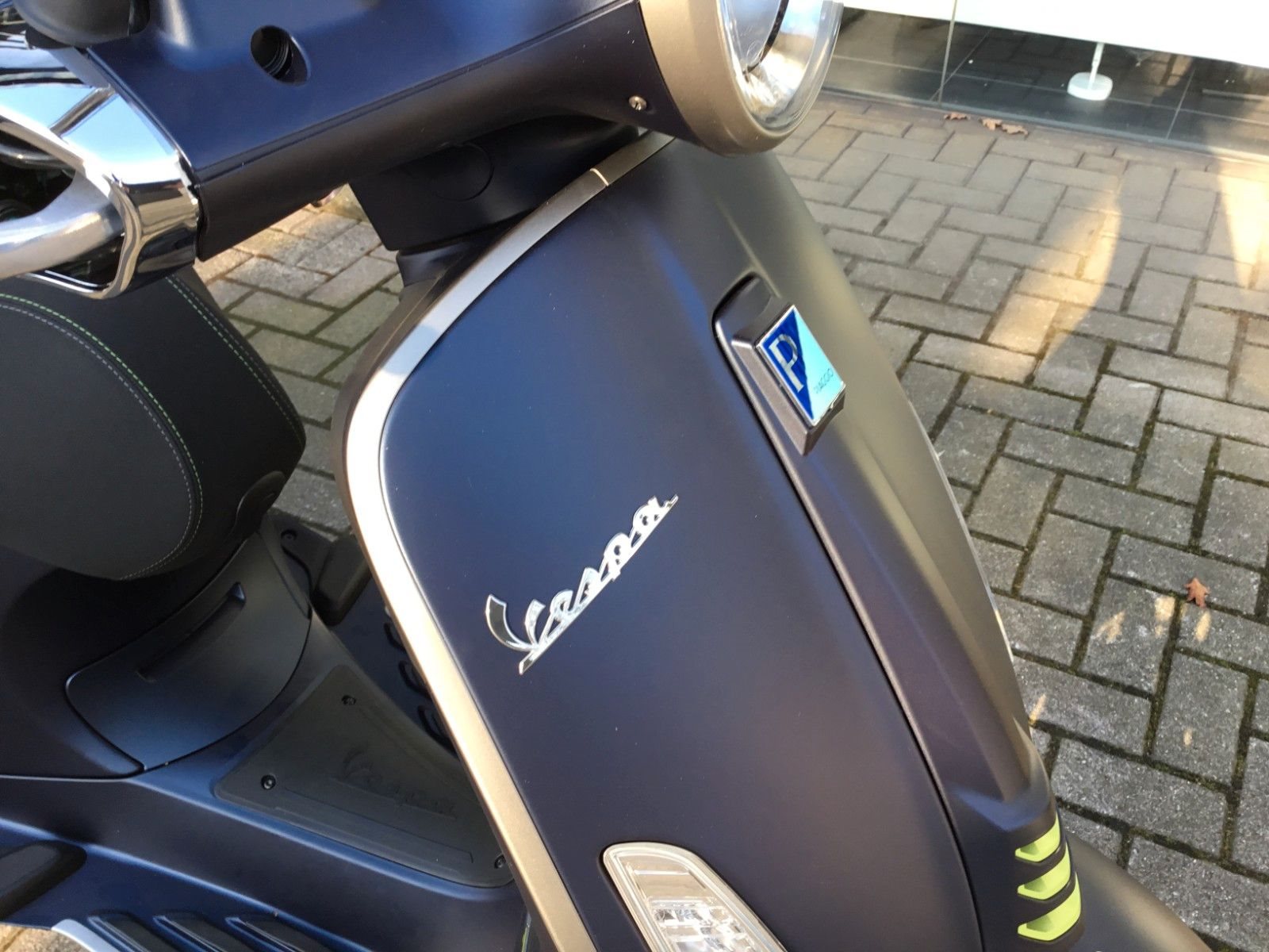 - Design Der Spritzschutz, die mattschwarze Batterieabdeckung und die eleganten 5-Speichen-Felgen sind nur einige der vielen Elemente, die diese Vespa zu etwas ganz Besonderem machen.