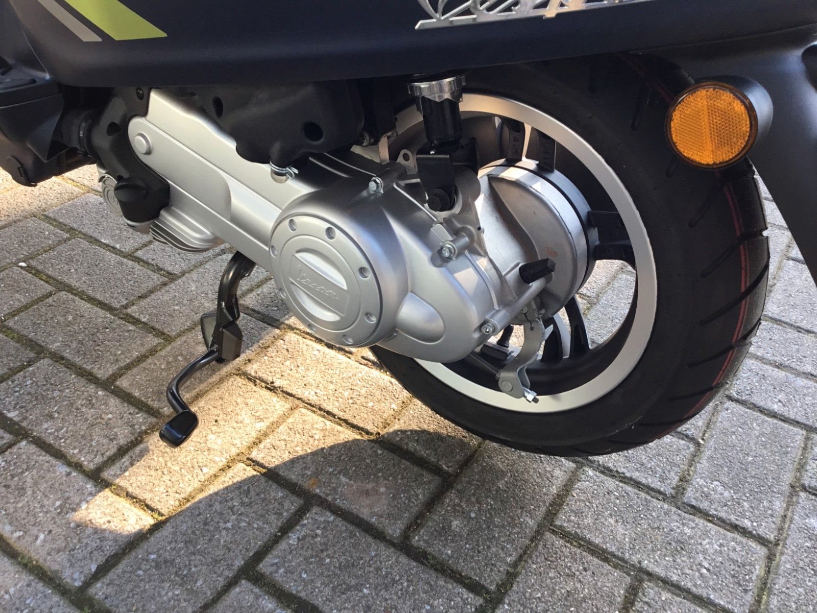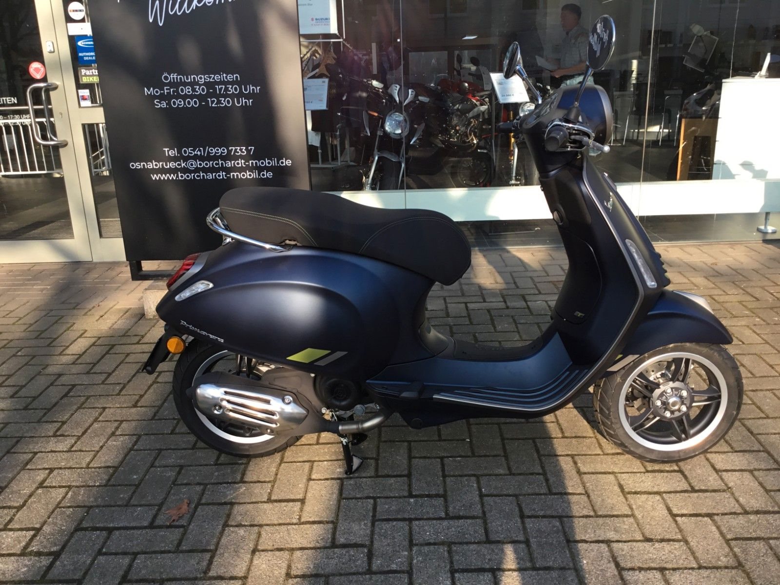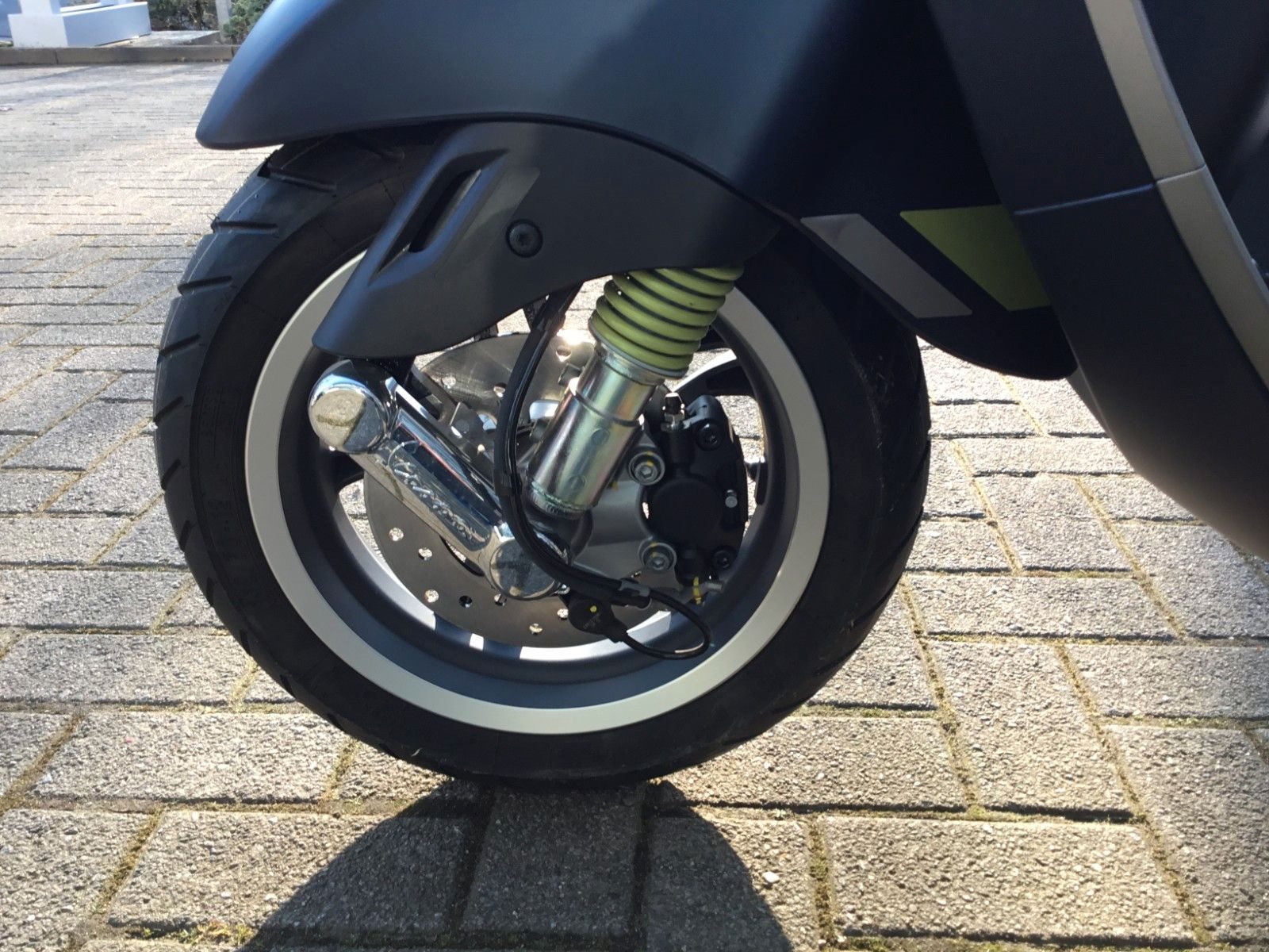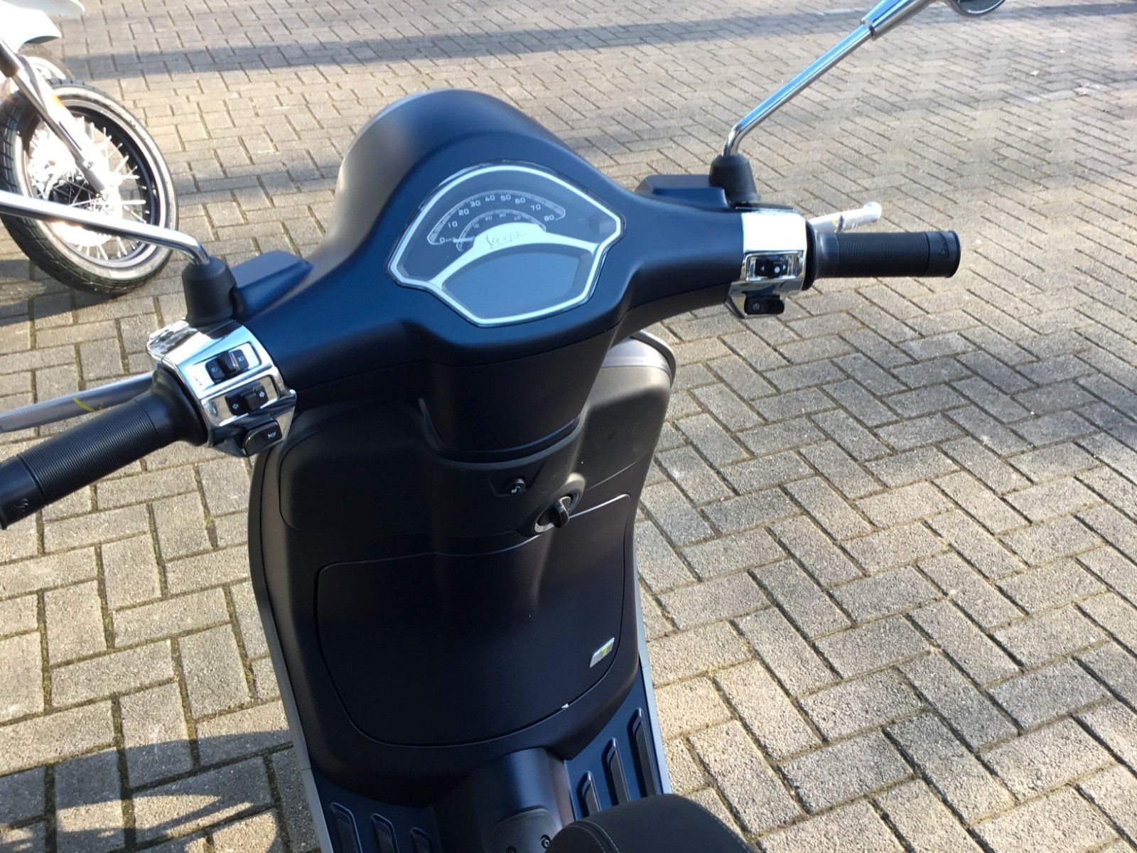- Design Der Spritzschutz, die mattschwarze Batterieabdeckung und die eleganten 5-Speichen-Felgen sind nur einige der vielen Elemente, die diese Vespa zu etwas ganz Besonderem machen.