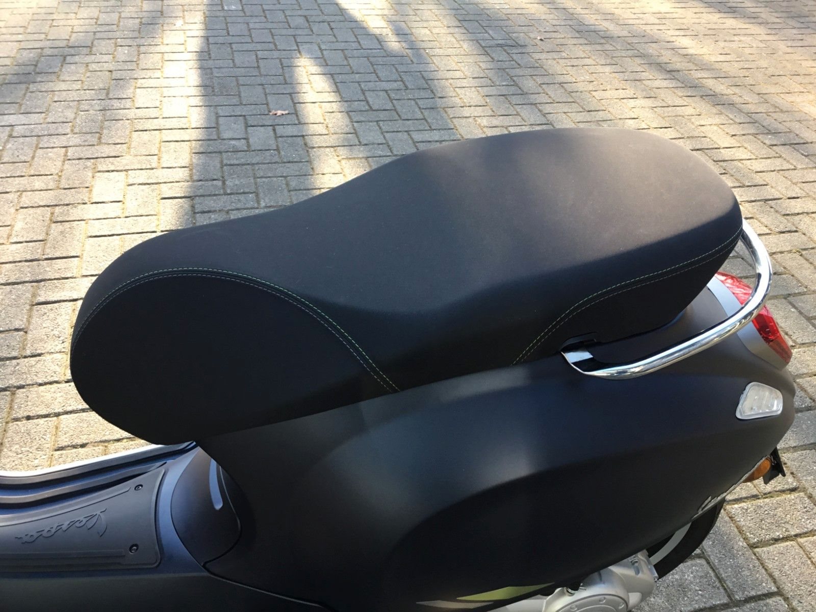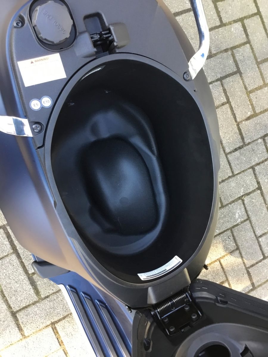 - Komfort Die Vespa Primavera Tech bietet maximalen Komfort dank hochwertiger Materialien und der Sitzbankentriegelung per Remote, mit der Sie Ihre Vespa aus der Ferne entriegeln können. Die bequeme Sitzbank verfügt über elegante graue und grüne Nähte auf der Vorder- und Rückseite.