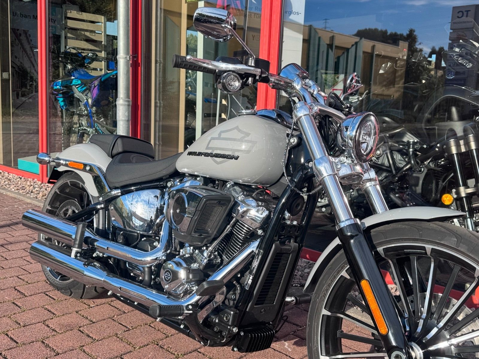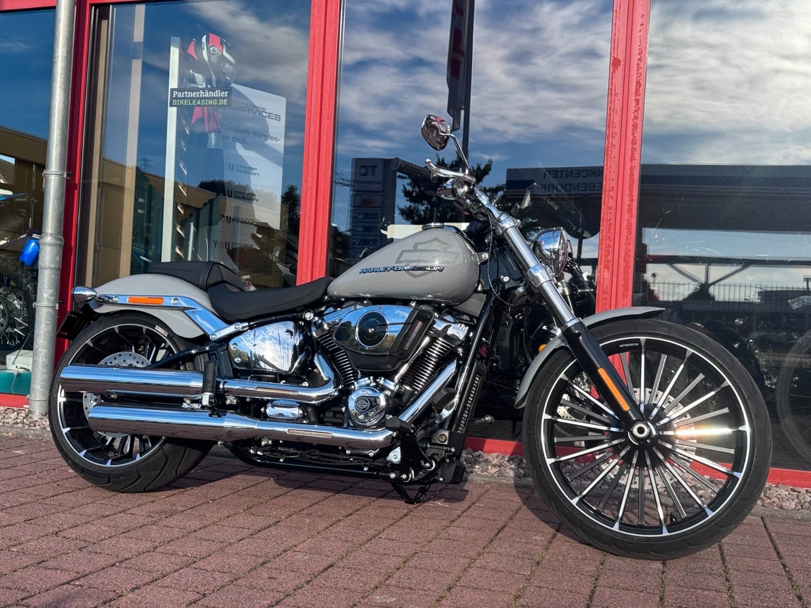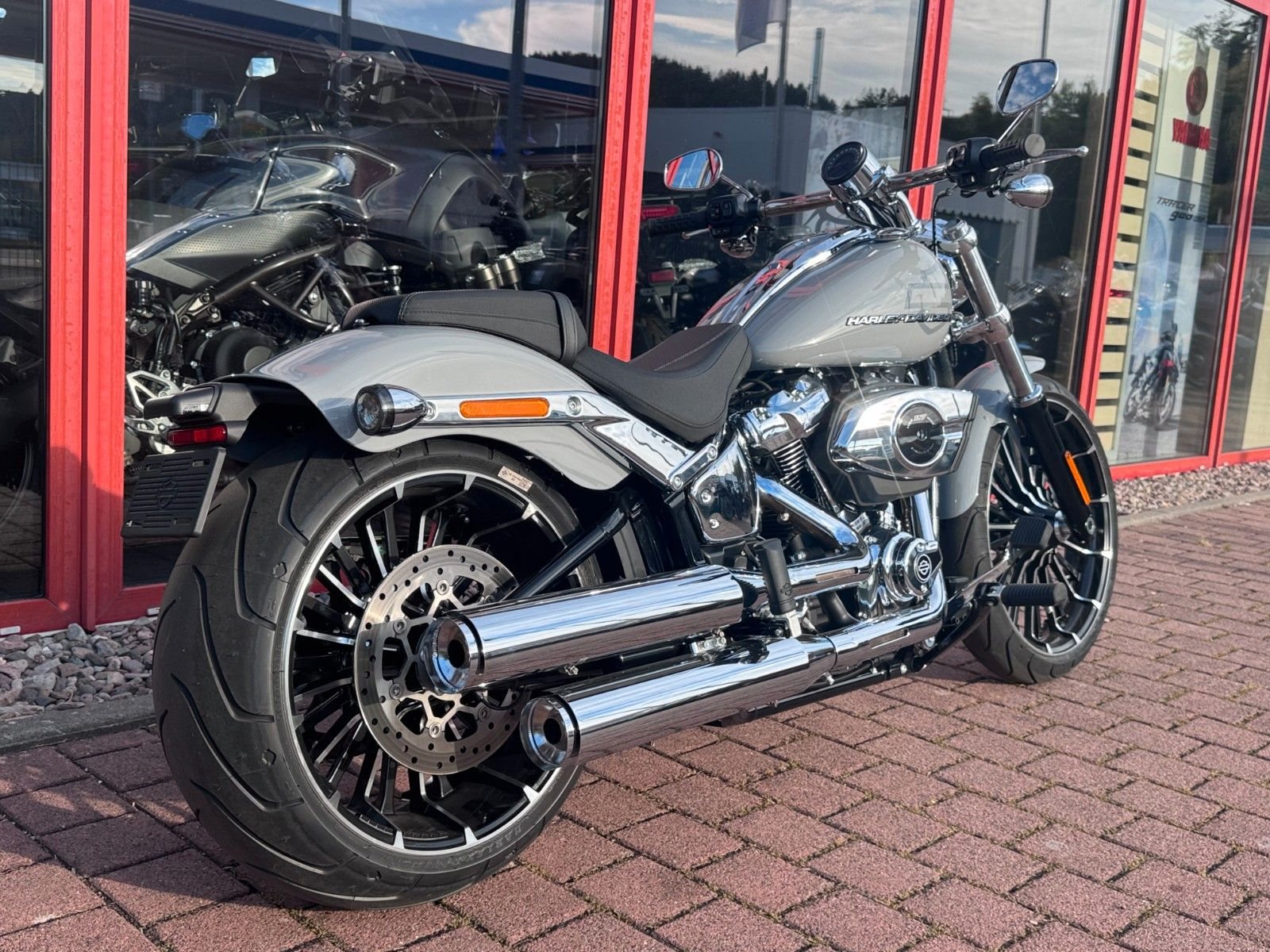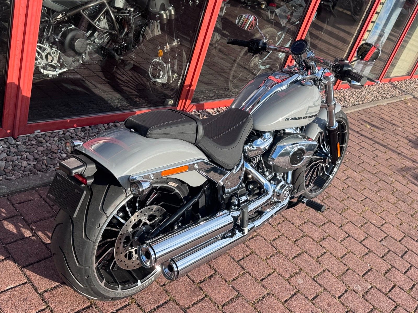 Mit einem breiten Hinterreifen, der Neigung eines klassischen Choppers und einem kräftigen Lackschema voller Grafiken sieht der Breakout besser aus als je zuvor.