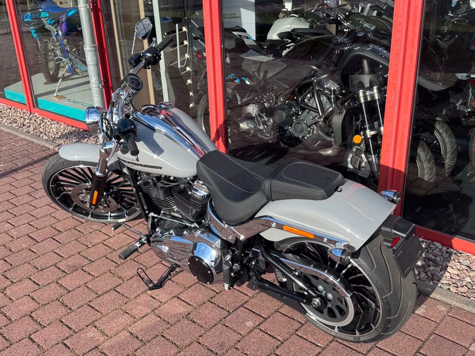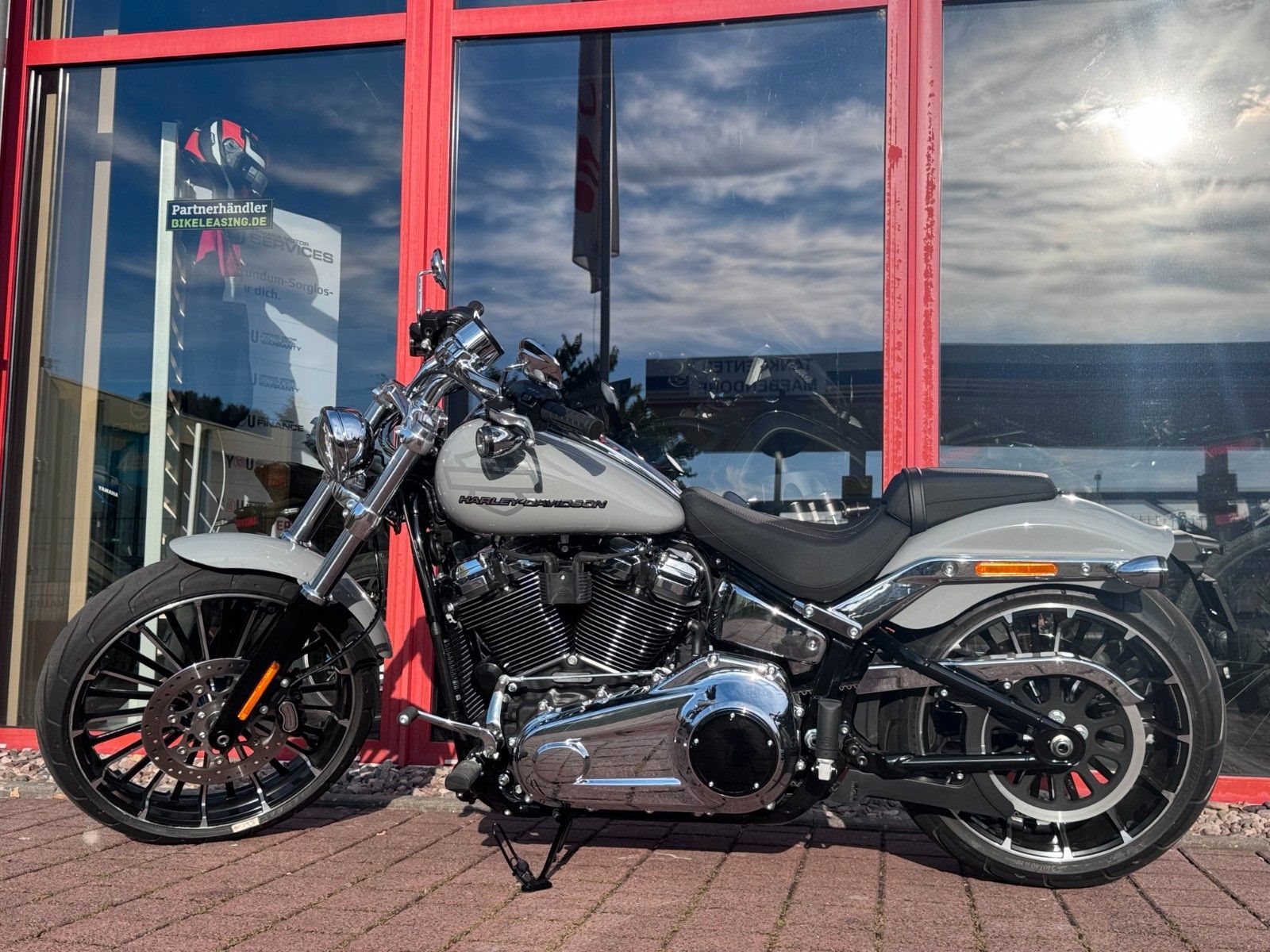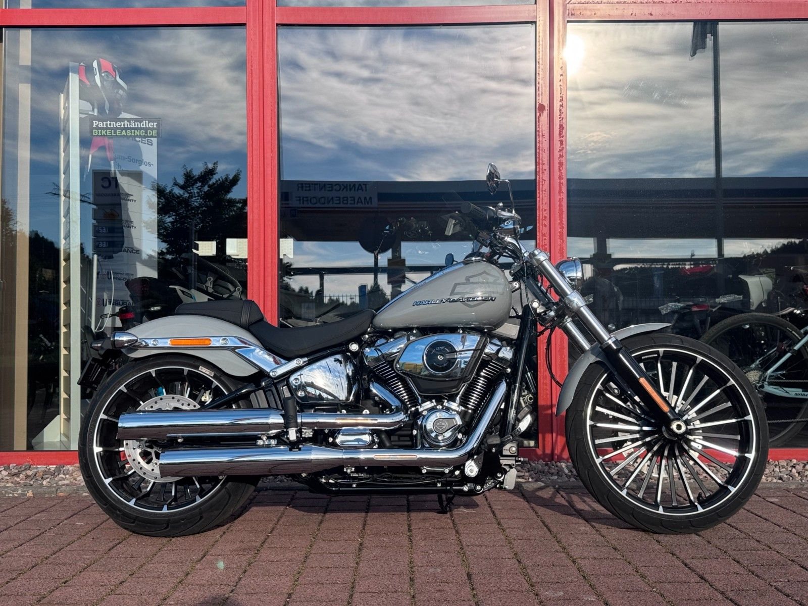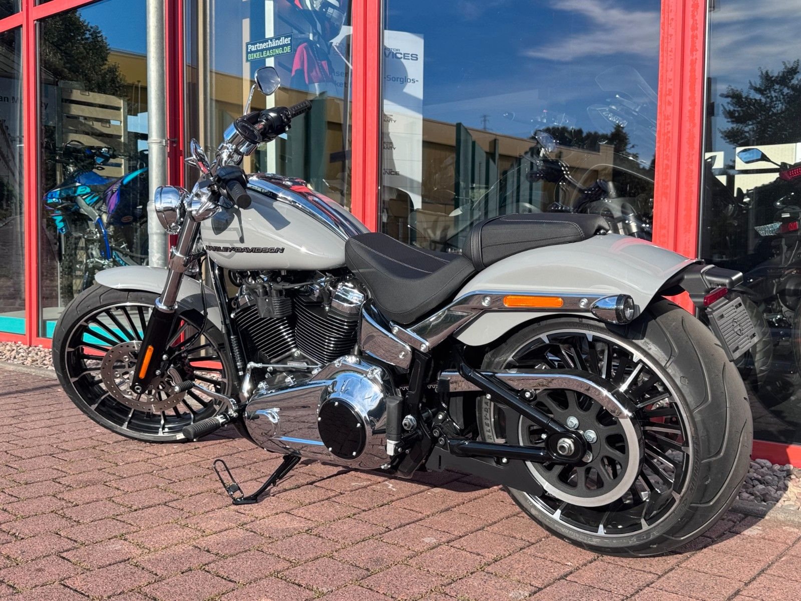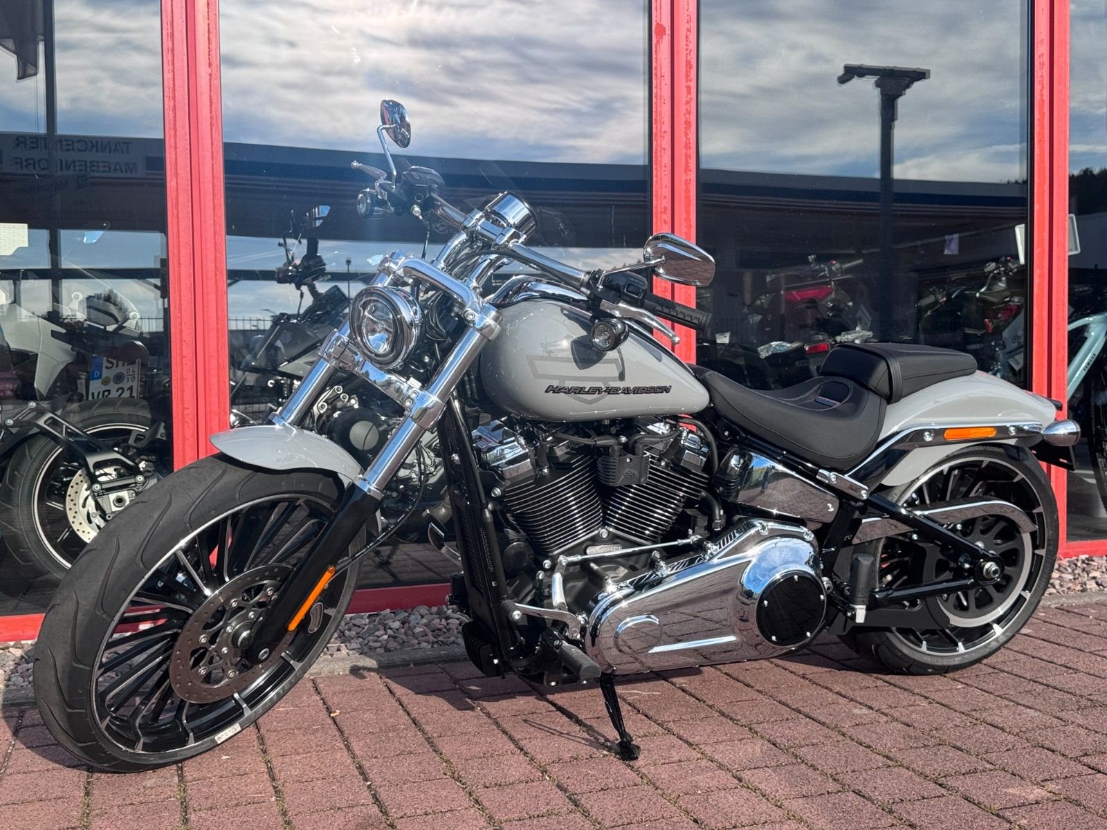 Mit einem breiten Hinterreifen, der Neigung eines klassischen Choppers und einem kräftigen Lackschema voller Grafiken sieht der Breakout besser aus als je zuvor.
