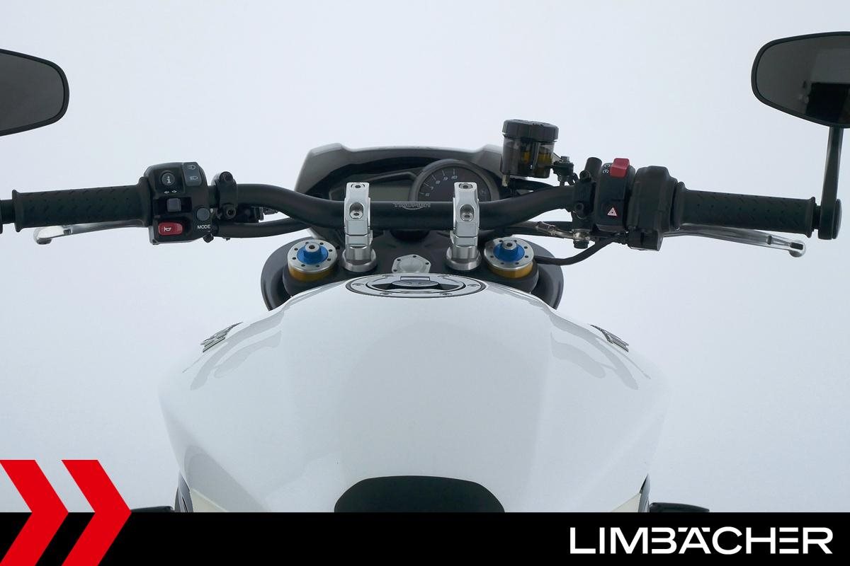 Wir bieten hier eine Triumph Speed Triple 1050 R mit einer neuen Jahresinspektion inklusive 40-Punkte-Durchsicht. Alle unsere Fahrzeuge werden mit mindestens einem Jahr TÜV übergeben.