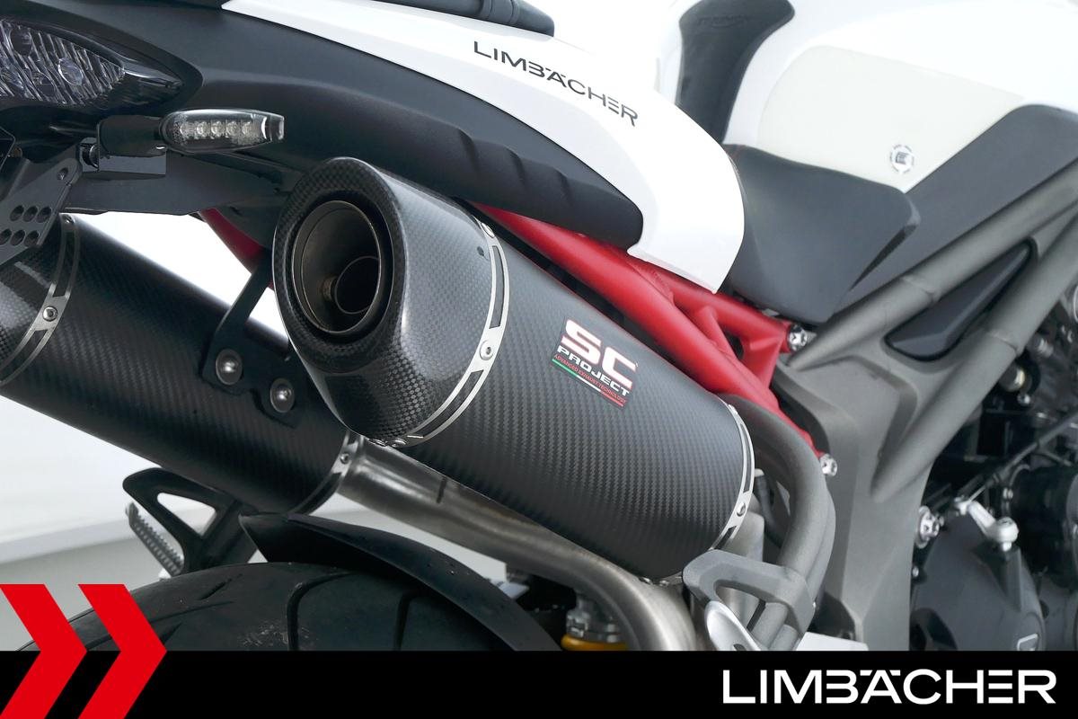 Eine scheckheftgepflegte Triumph Speed Triple 1050 R aus erster Hand in sehr gepflegtem Zustand u.a. mit SC-Project-Endschalldämpfer sowie Öhlins-Fahrwerk.