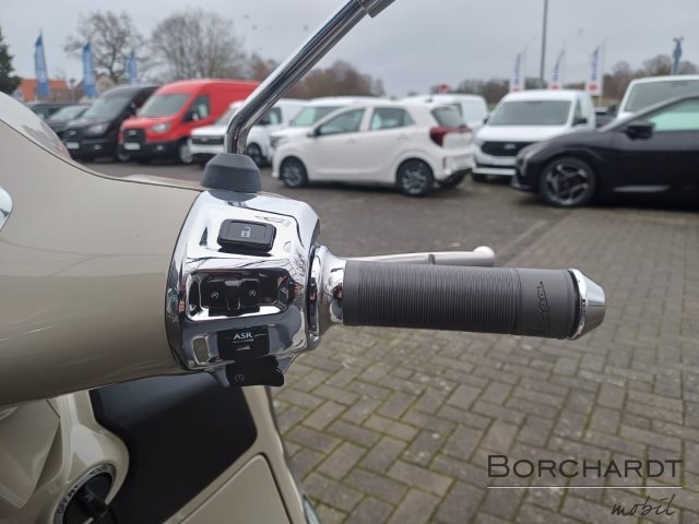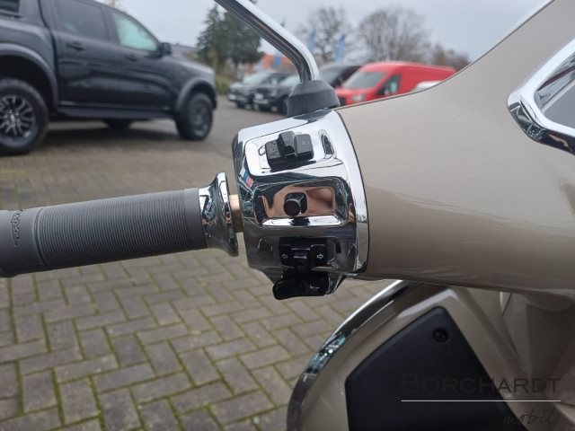 Maximale FunktionalitätKomfort und Bequemlichkeit stehen bei der Vespa Gts ganz oben auf der Tagesordnung, mit Merkmalen wie der schlüssellosen Zündung, dem ferngesteuerten Öffnen des Sitzes und einem praktischen USB-Anschluss zum Aufladen Ihrer Geräte unterwegs. Darüber hinaus verfügt sie über ein Cockpit mit LC Display, das mit Vespa MIA optimiert werden kann, einem Zubehör, das Ihre Vespa mit Ihrem Smartphone verbindet, so dass Sie Anrufe über die Tasten am Lenker entgegennehmen, Musik abspielen und per Sprachbefehl telefonieren können.