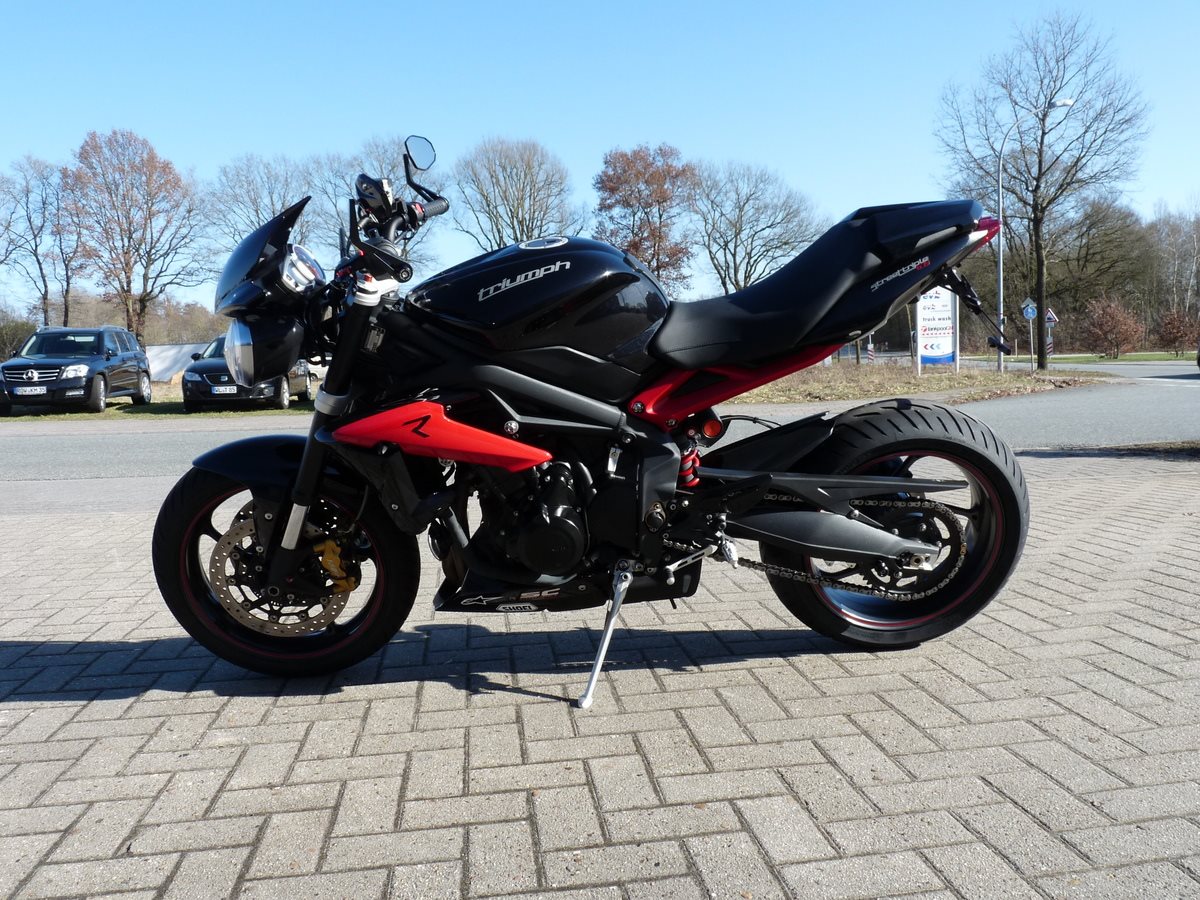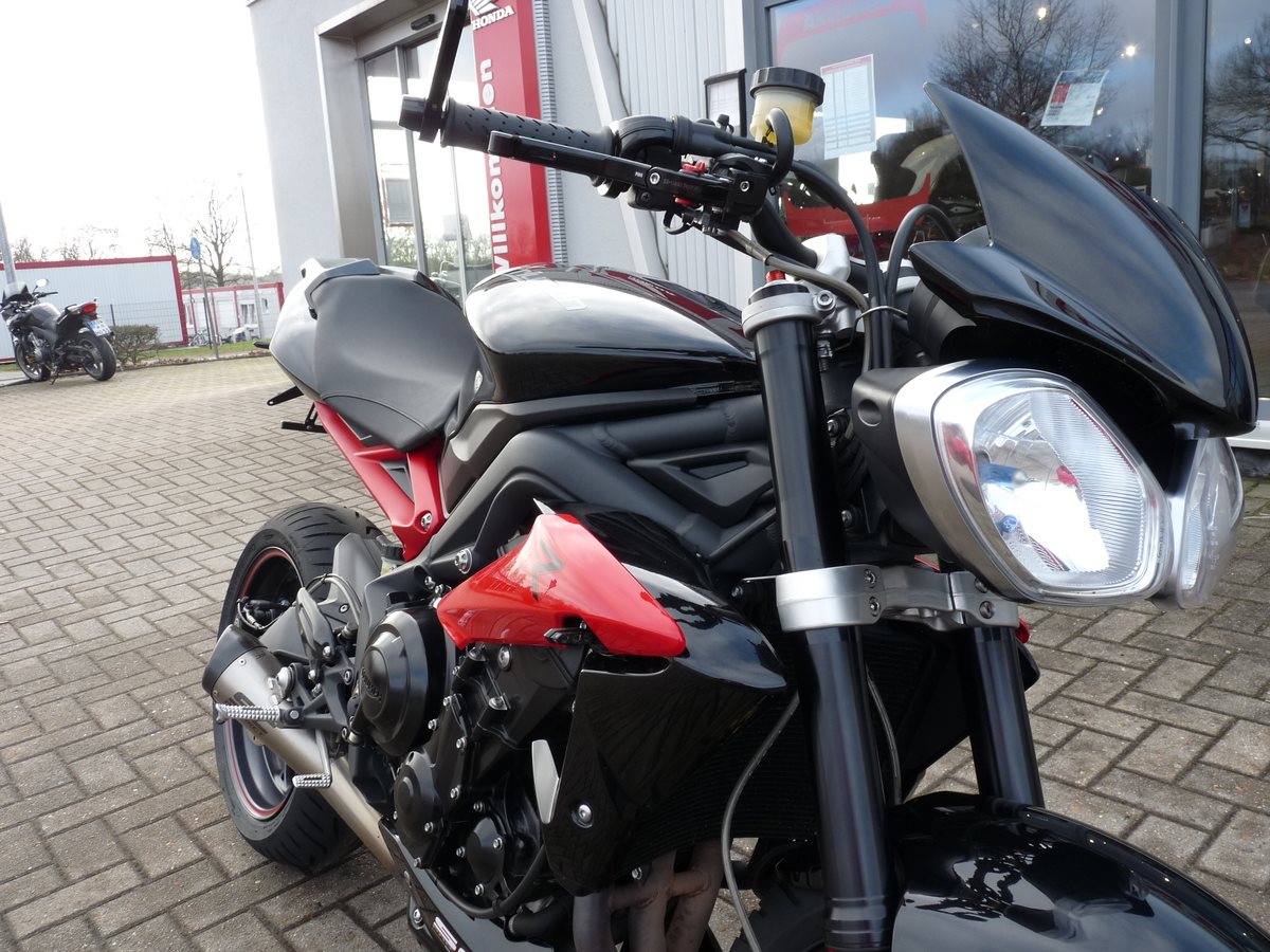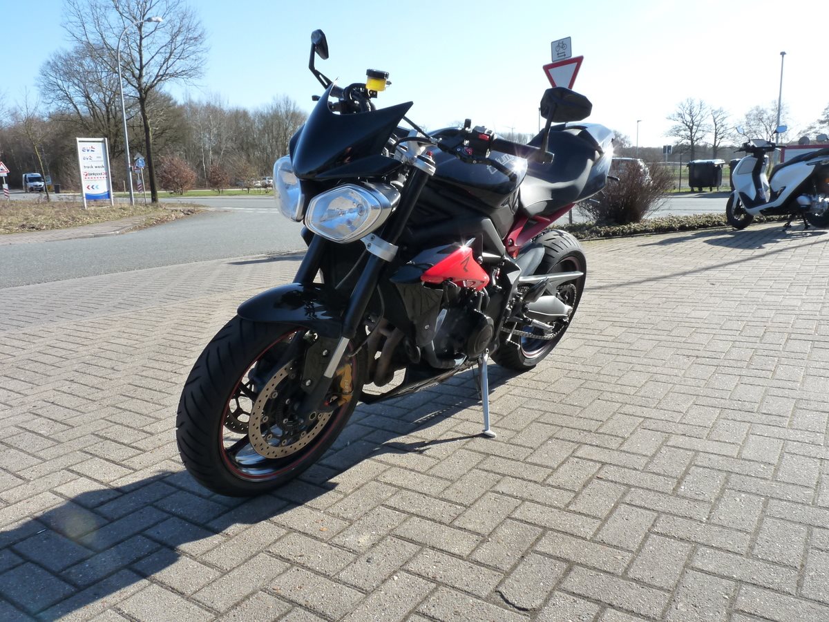 Schick zurwecht gemachte Street Triple 675 ABS - Viel Zubehör - frische Inspektion beim Verkauf - Tüv neu - Reifen hinten neu - SC Projet Auspuff - kleiner KZT - LED Blinker - Höckerabdeckung - Lenkerspiegel - Titax Brems + Kupplungshebel - Sozia Fußrasten sind mit dabei Hallo aus Zeven , wir sind Ihr Ansprechpartner rund um für Honda und Beta Neufahrzeuge sowie Service/Inspektionen . Wir haben eine große Auswahl an neuen und gebrauchten Motorrädern für Sie! Gern nehmen wir auch ihre alte Maschine in Zahlung oder kaufen sie auf Wunsch an, auch ohne Neukauf! Wenn Sie wünschen liefern wir Ihnen das neue Bike bis vor die Haustür. Schon ab 259,- Euro können Sie diesen Service bundesweit in Anspruch nehmen! Es gibt Finanzierungen über die Honda Bank, bzw. Creditplus Bank ! Ratenfinanzierung bis zu 96 Monate, auch ohne Anzahlung, ist möglich! Gerne unterbreiten wir Ihnen ein persönliches Angebot! Nutzen Sie unsere Meisterwerkstatt und geschultes Personal! Inspektion, Reifen, Ersatzteile, Unfallreparatur, Leih/Mietfahrzeuge und Hol + Bring Service, für fast alle Marken! Beste Biker Grüße Ihr Motorradhaus Schreiber Team Änderungen und Irrtümer unter Vorbehalt.