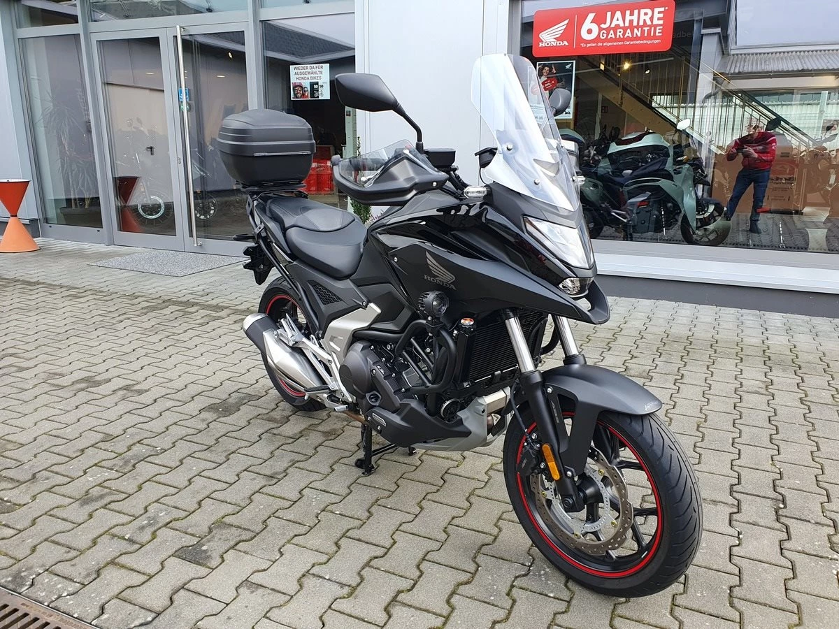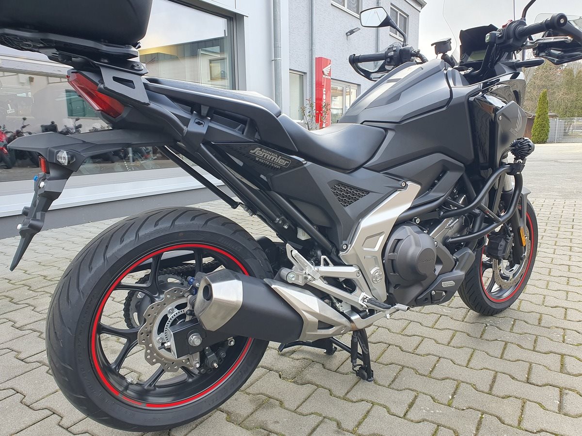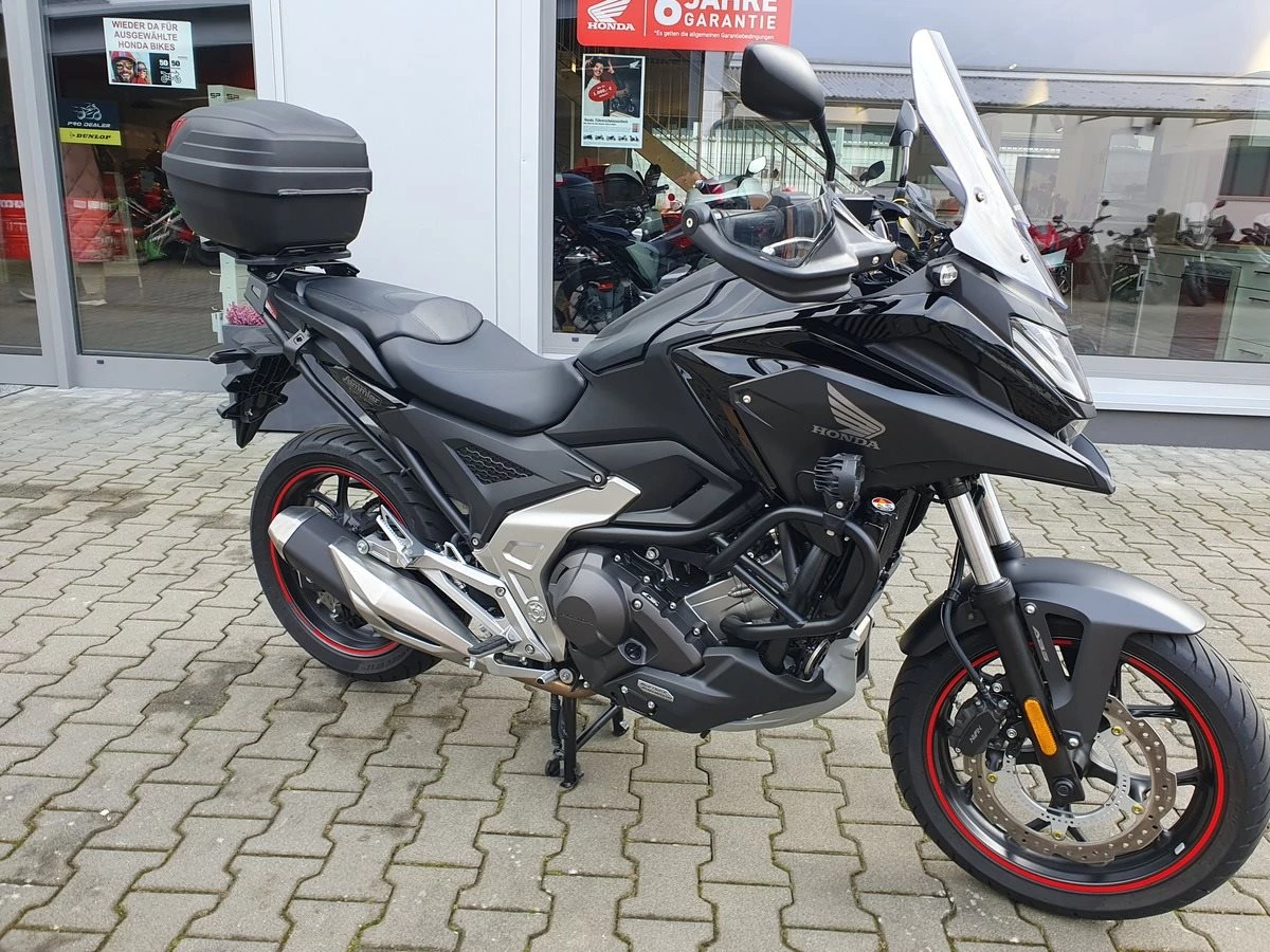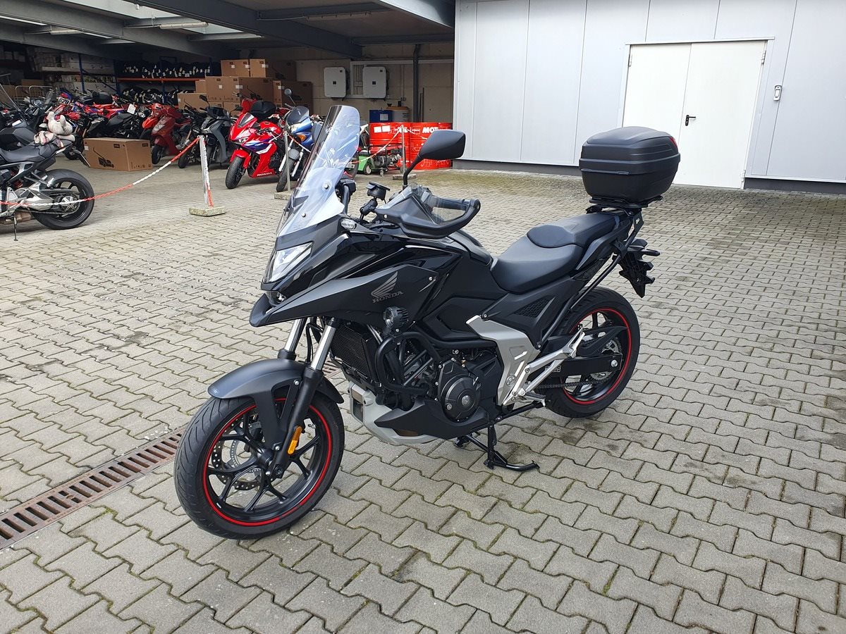 Honda NC 750 X DCT mit Zubehör Modelljahr 2023 in Matt Ballistic Black.