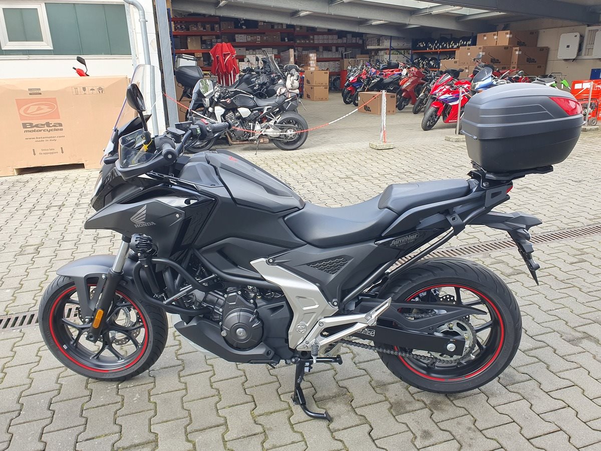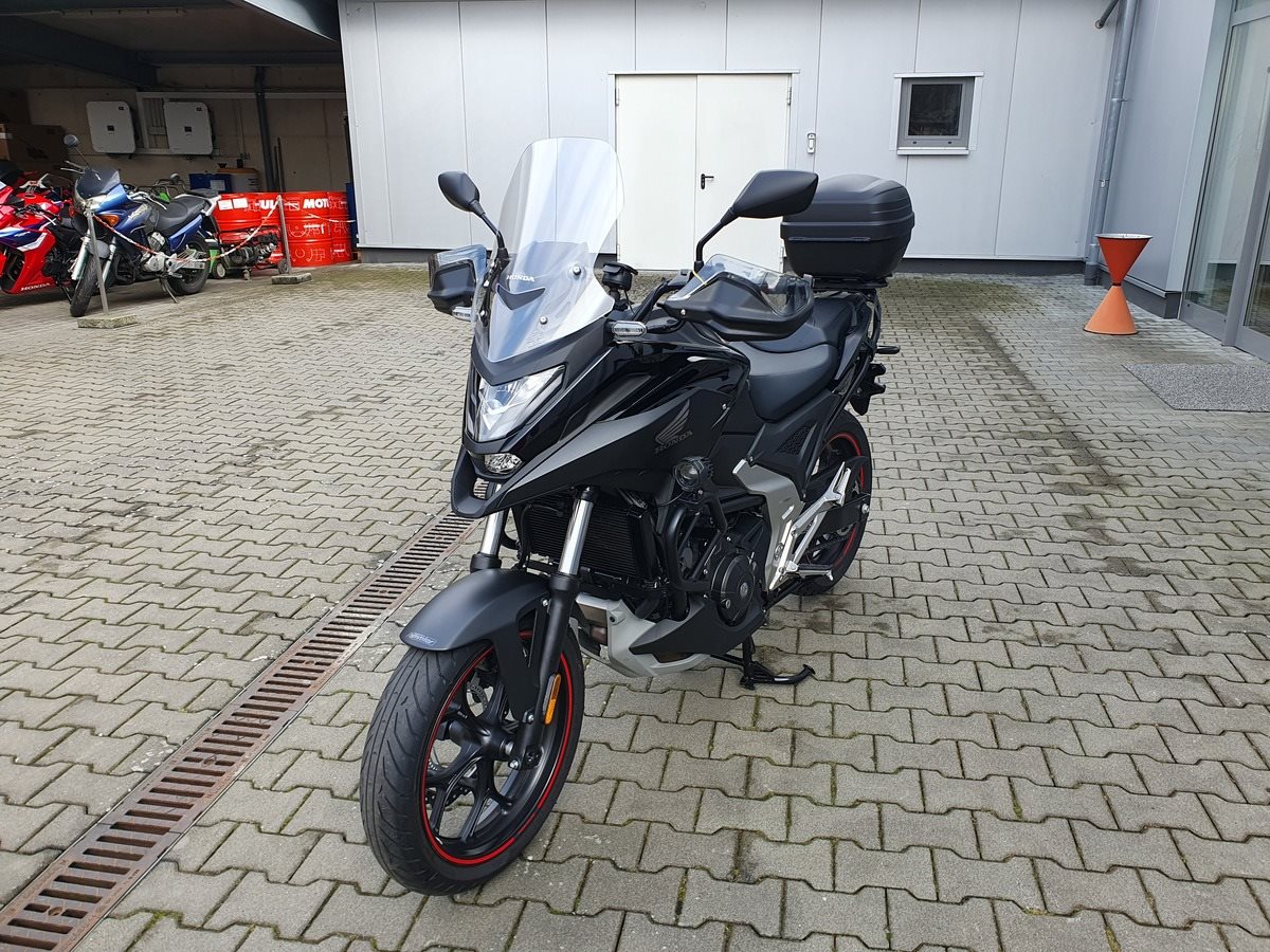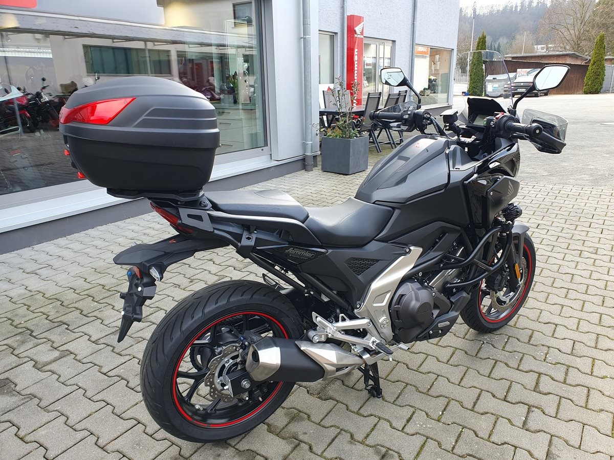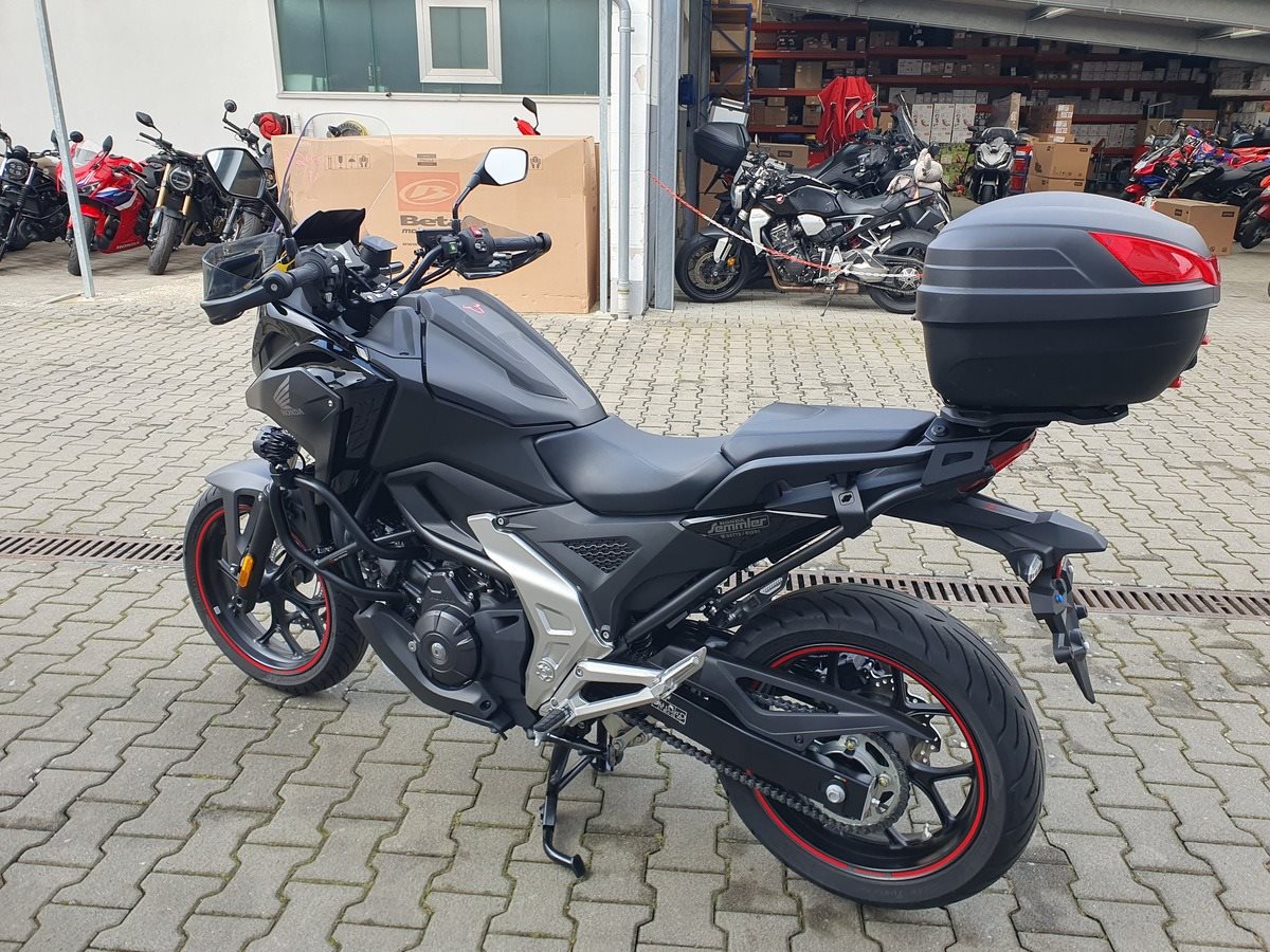 Honda NC 750 X DCT mit Zubehör Modelljahr 2023 in Matt Ballistic Black.