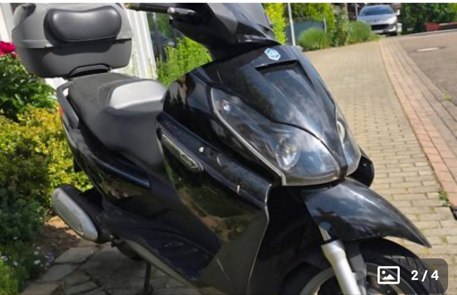 Zusatzausstattung: +TOP-CASE X7 mit Rückenlehne in Fahrzeugfarbe und +Funk-Alarmanlage TG502 + Regenabdeckfolie. Fahrzeug wurde nur im Sommer genutzt. Fahrzeug ist unfallfrei, nur bei einem Anfahren glitt mir das Krad weg und es wurde dabei die rechte Seitenverkleidung ab dem 125ccm-Schriftzug und darunter verkratzt (sh. Foto4). Wegen Fahrzeugwechsels abzugeben.