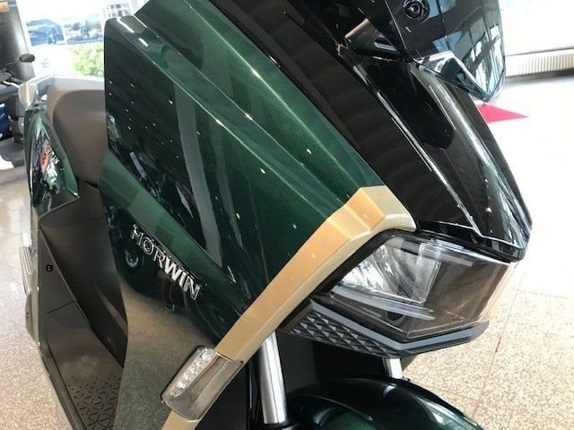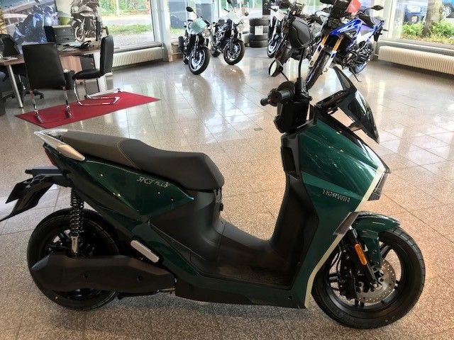 - Anlässlich der letzten Motorradmesse in Mailand vergangenen November präsentierten wir unseren neuen HORWINSK3 Plus. Das sportliche Leichtkraftrad in der L3e-Klasse fährt bis zu 100 km/h schnell. Dafür sorgt ein Center Motor mit einer maximalen Leistung von 8,64 kW, welcher das Fahrzeug über einen leisen Riemenantrieb in Bewegung setzt. Mit zwei Akkus (72 V / 45 Ah) schafft der SK3 Plus eine Reichweite von ca. 130 km. Eine vollständige Aufladung dauert knapp 4,5 Stunden. Mit seiner klaren, kantigen Linienführung unterscheidet sich der SK3 Plus von den runden Formen der E-Scooter HORWIN EK3 und EK1. Damit erschließt er ein neues Zielpublikum. Es stehen drei Farben zur Auswahl: grün metallic, grau metallic und schwarz matt. Ausgestattet ist der SK3 Plus mit zahlreichen technischen Finessen. Dazu zählen etwa rundum LED-Beleuchtung, ein neues übersichtliches 7" TFT-Display, Serienmäßig mit zwei Akkus, FOC-Energie- und CBS-Bremsmanagementsystem sowie eine OBD-Schnittstelle.
