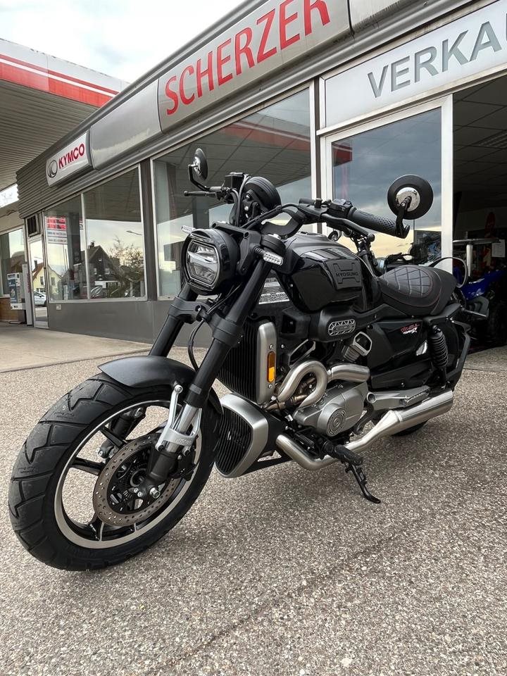 Kraftvoll, markant und mit moderner Technik ausgestattet die GV 125 X ABS begeistert mit Dynamik und Charakter. Das auffallige Muscle-Bike-Design mit breitem Tank, markanten Luftfiltern und dem robusten 60-V2-Motor macht sie zu einem echten Blickfang.