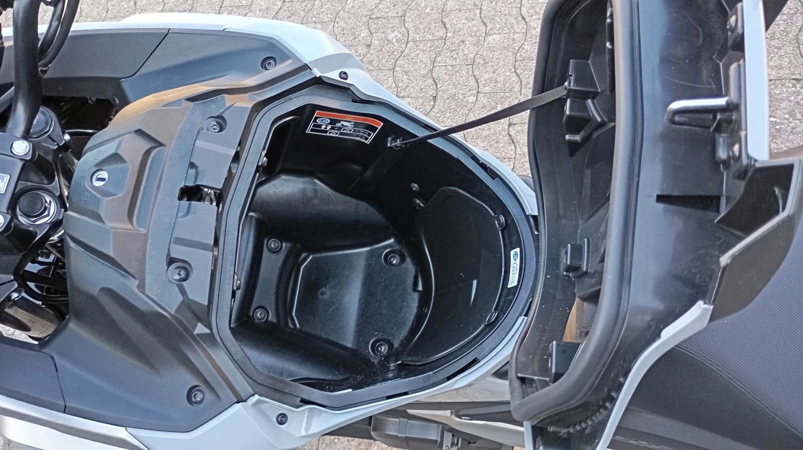 - Großer Stauraum vorn (für Helm geeignet)