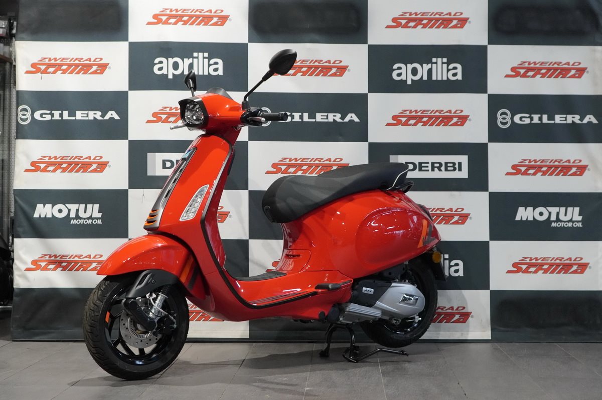 Die Vespa S Sprint verkörpert den unverwechselbaren Charakter der Generationen von Vespa Sportmodellen, die in jedem Umfeld einen Hauch von Dynamik versprühen. Ihr sportlicher Look wird durch kontrastierende Grafiken unterstrichen, während schwarze Details wie der rechteckige Rahmen um den Scheinwerfer und die neu designten 6-Speichen-Aluminiumfelgen für eine raffinierte Note sorgen.