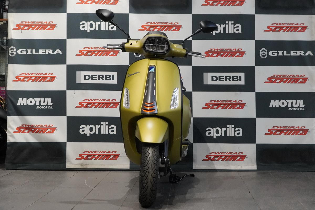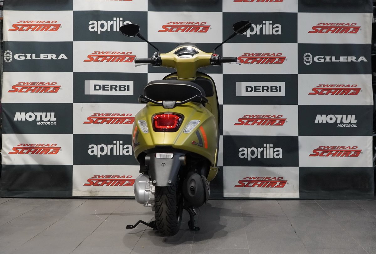 Die Vespa S Sprint verkörpert den unverwechselbaren Charakter der Generationen von Vespa Sportmodellen, die in jedem Umfeld einen Hauch von Dynamik versprühen. Ihr sportlicher Look wird durch kontrastierende Grafiken unterstrichen, während schwarze Details wie der rechteckige Rahmen um den Scheinwerfer und die neu designten 6-Speichen-Aluminiumfelgen für eine raffinierte Note sorgen.