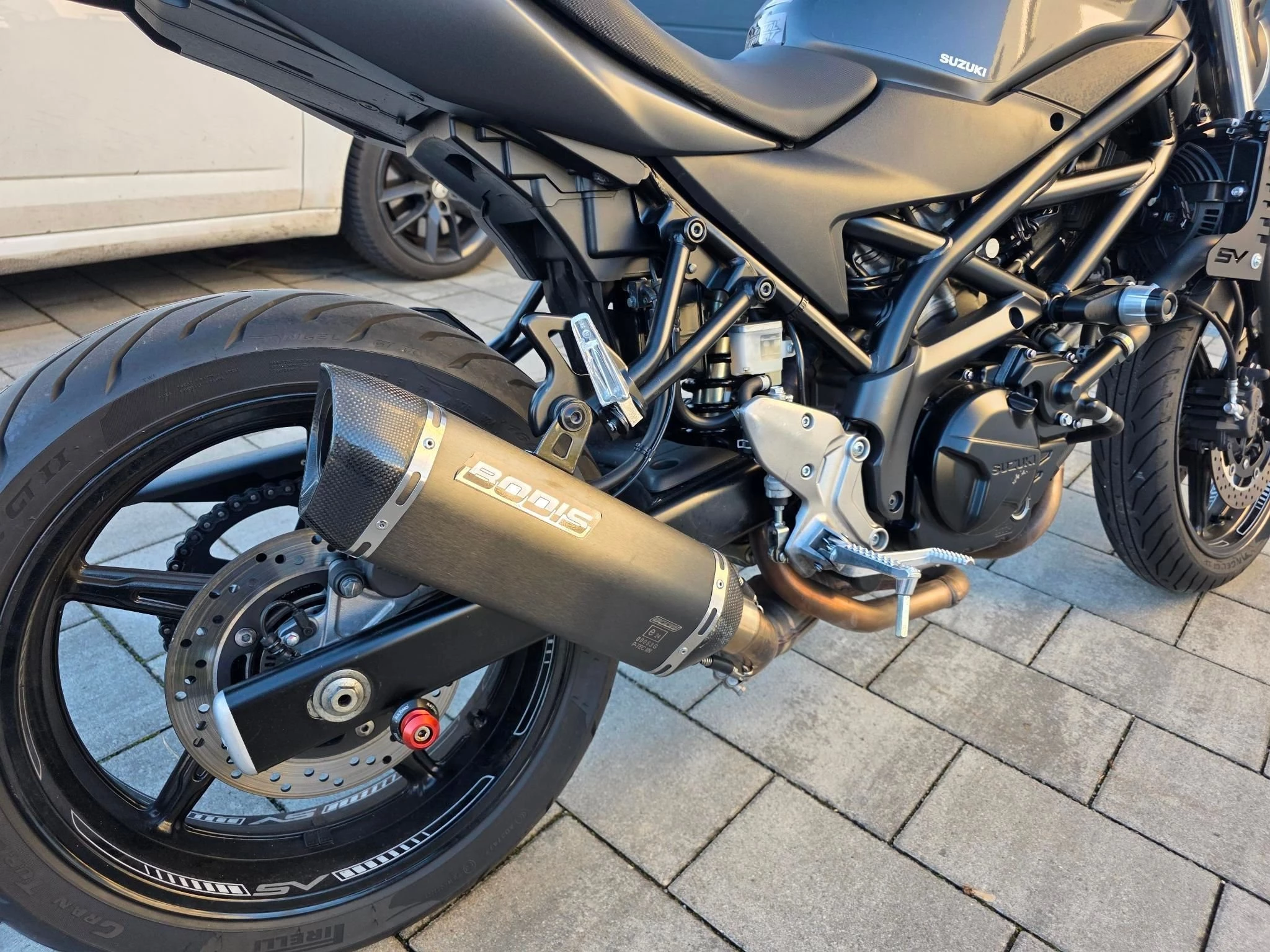Der Sound der Suzuki ist einzigartig, Auspuff von Bodis.