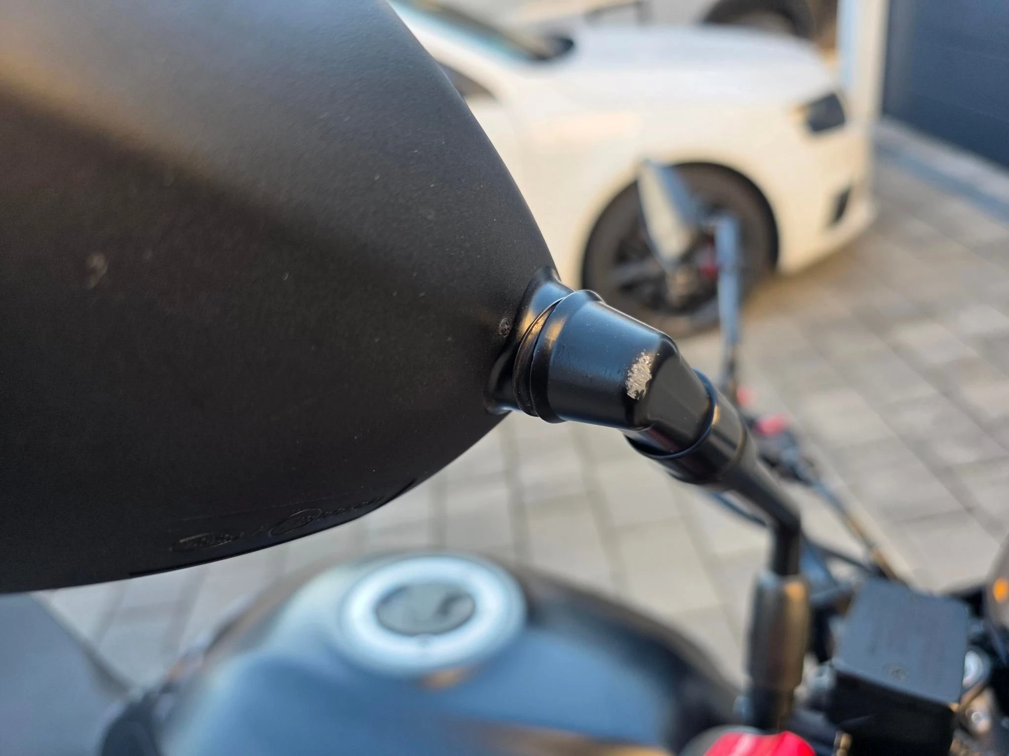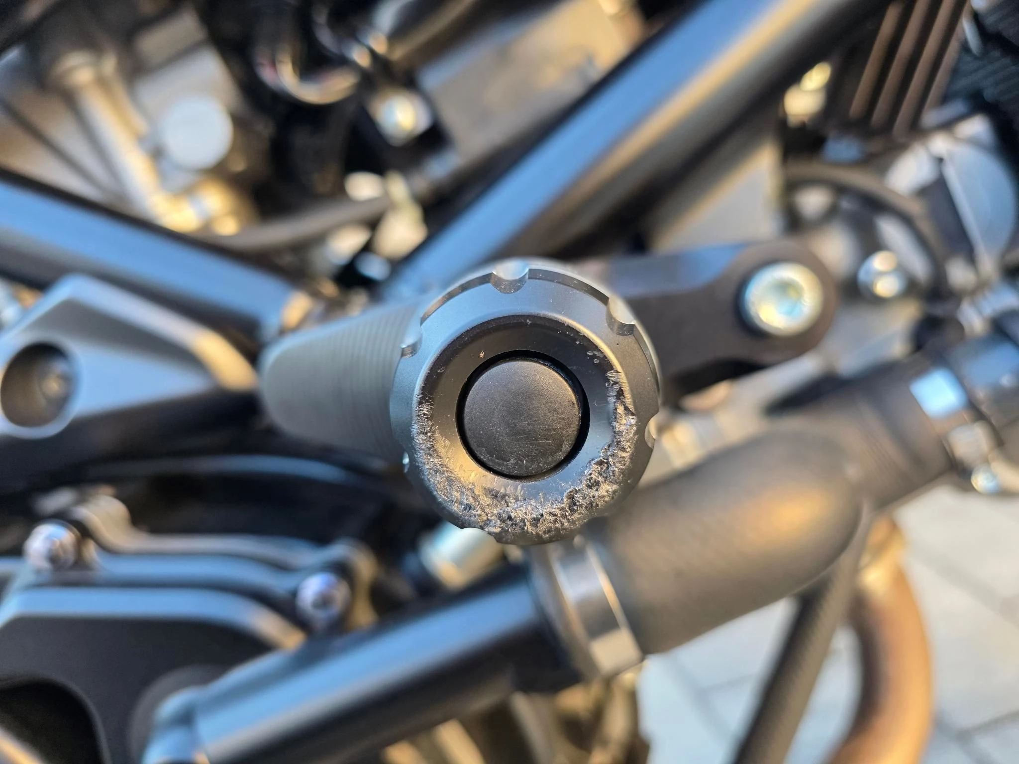 Leichte Kratzer. An der Garagenwand gestriffen.