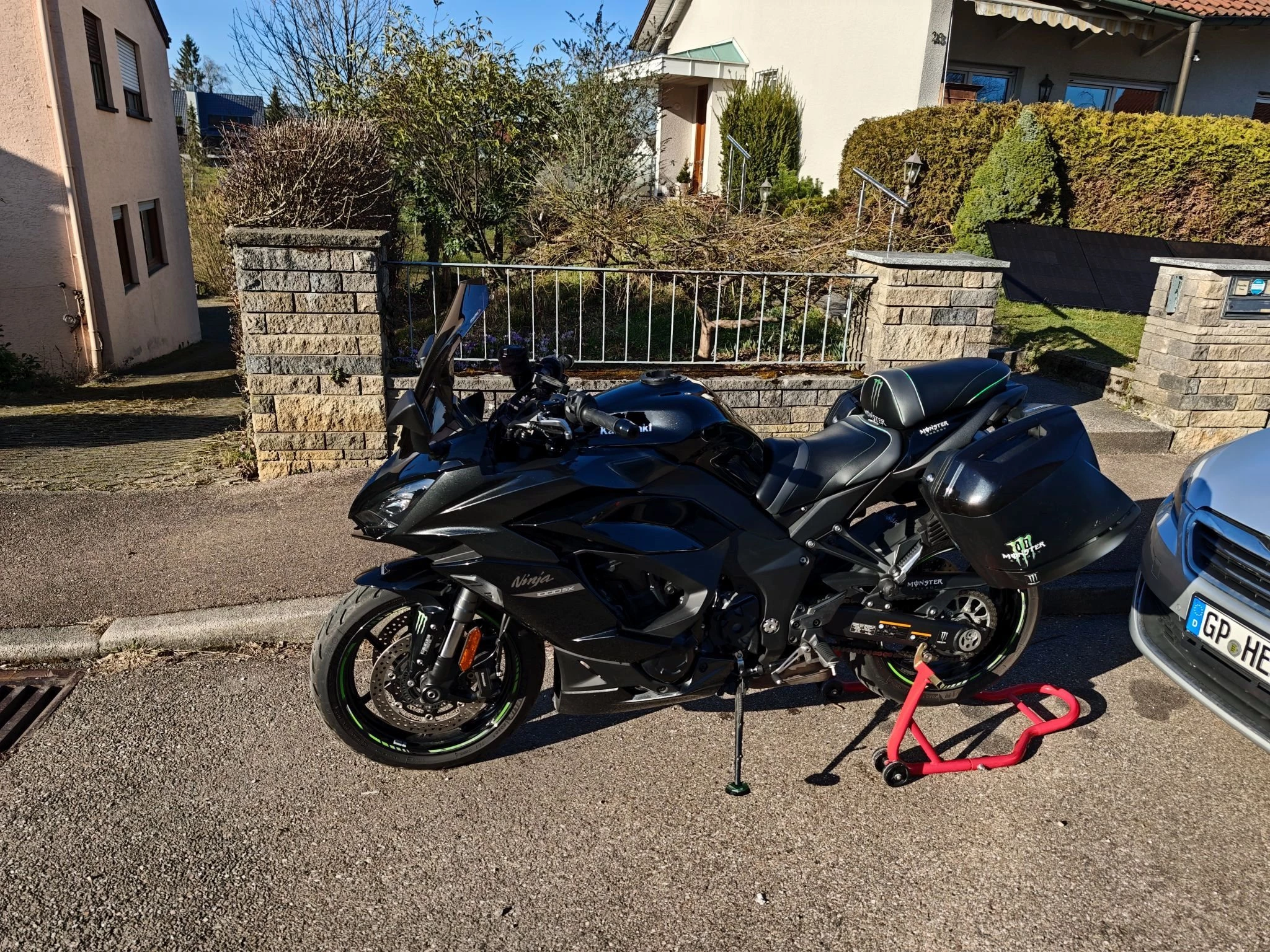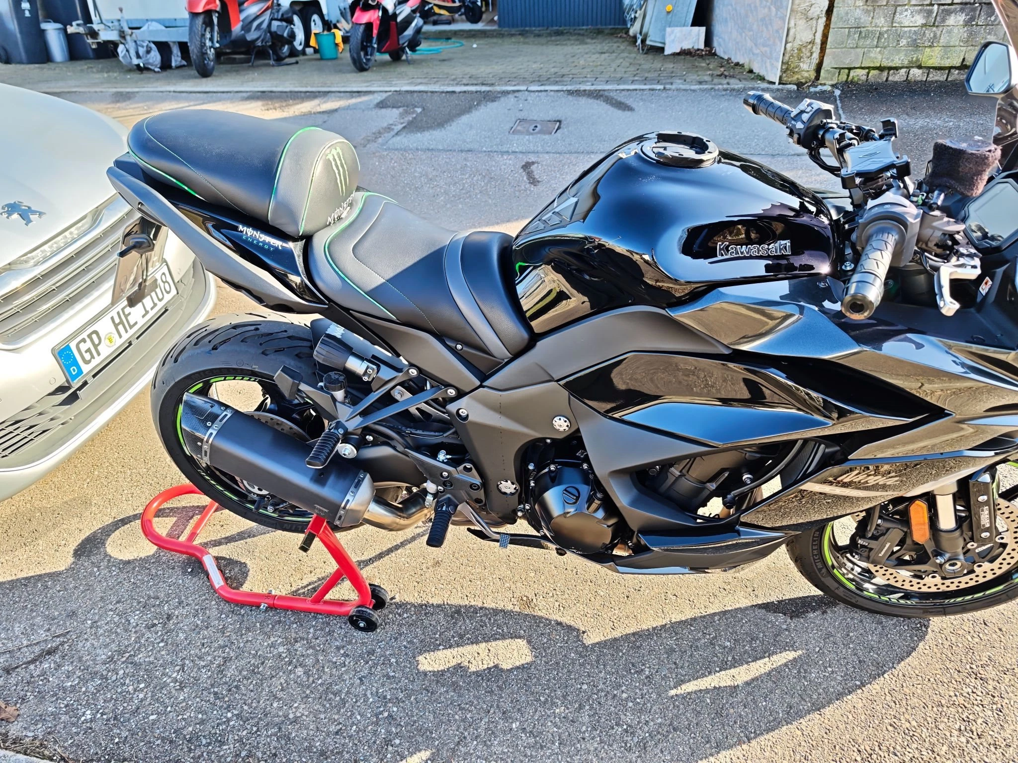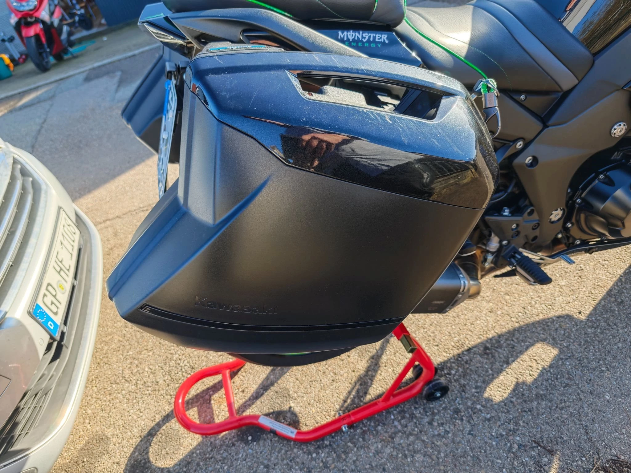 Aus gesundheitlichen Gründen zu verkaufen. Vom Vorgänger wurde bei Neukauf ein BODIS Auspuff incl. ABE verbaut. Kurzer Kennzeichenhalter, Probrake-Brems und Kupplungshebel in Titanoptik. Sitzbank zur Komfortsitzbank (Gelsitzbank) umgebaut. Abdeckung für Soziusbank vorhanden. getönte Sportscheibe vorne. Koffer mit Innentaschen sind dabei. Incl. Tankrucksack und Halter (SW Motech EVO) am Tank. Original Navihalter. Mini Blinker Hinten. Originalteile (Hebel / Auspuff etc. vorhanden) und gebe ich gegen geringen Aufpreis mit. Der Kundendienst wäre jetzt fällig zum Frühjahr. Scheckheft vorhanden. 2 Schlüssel. TÜV ohne Mängel.