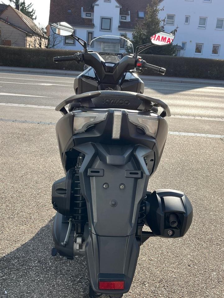 Mit seinem frischen, dynamischen Design setzt der DOWNTOWN GT 350i TCS nicht nur optisch Akzente. Die sportlich-aggressive Linienfuehrung und die markante Frontpartie mit modernem LED-Lichtkonzept verleihen dem Maxiscooter eine unverwechselbare Erscheinung. Der grosszuegige Windschutz und die aerodynamische Form sorgen fuer einen eleganten und funktionalen Auftritt, der sowohl in der Stadt als auch auf laengeren Strecken ueberzeugt.