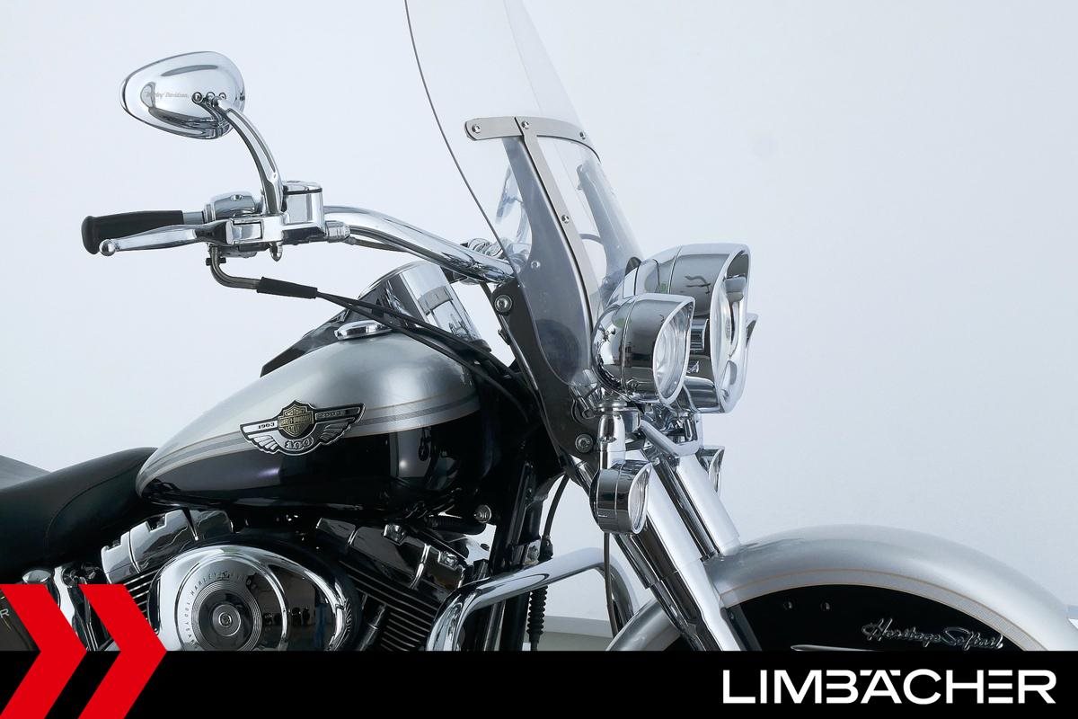 Eine scheckheftgepflegte Harley-Davidson Heritage Softail Classic FLSTC aus zweiter Hand in sehr gepflegtem Zustand u.a. mit Jekill&Hyde-Endschalldämpfer sowie Sturzbügel 4teilig.