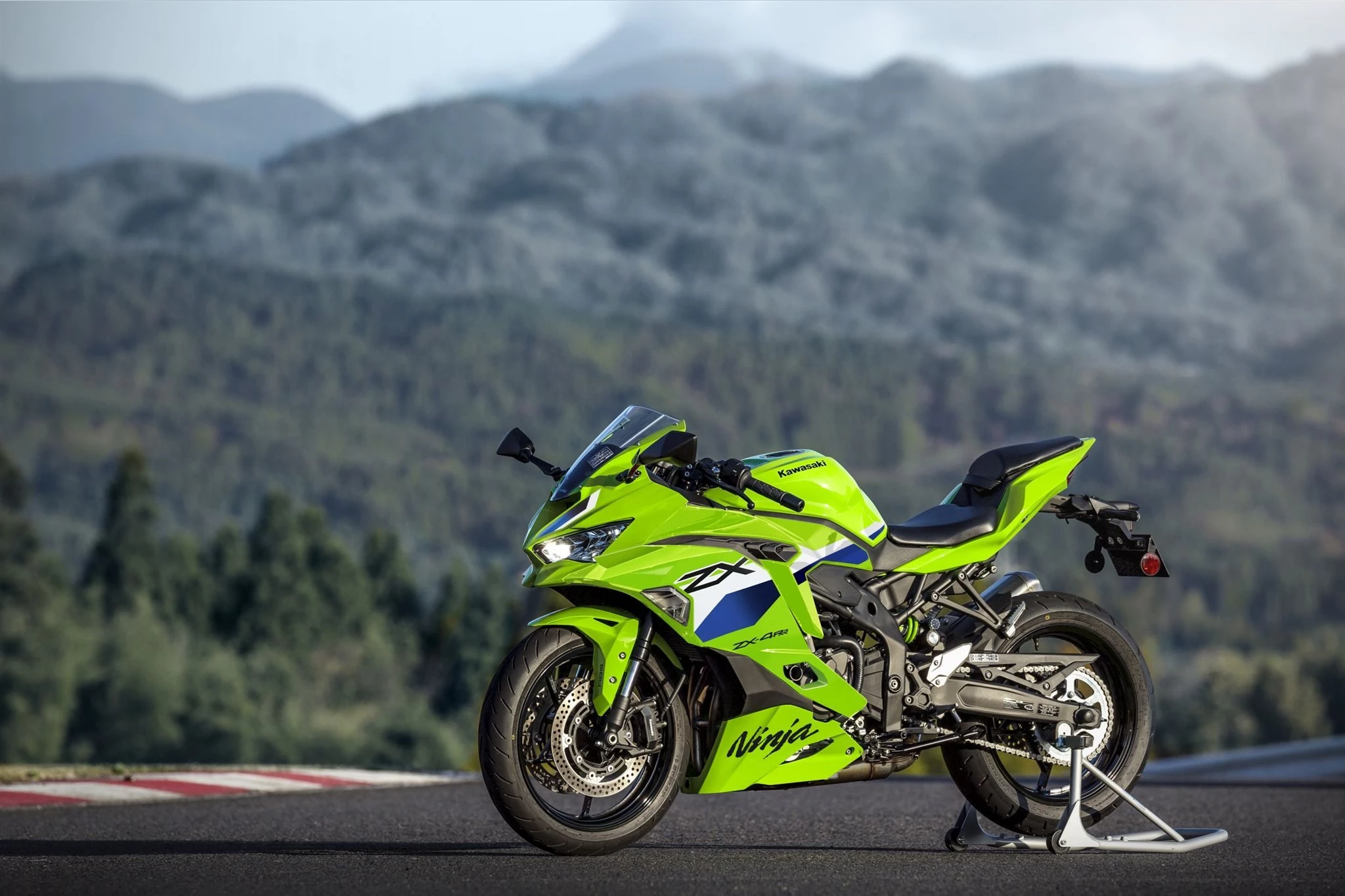 Mit der Ninja ZX-4RR wurde eine spektakuläre 400-cm-Revolution eingeläutet. Ihr Reihenmotor mit vier Zylindern erreicht nie dagewesene 57 kW (77 PS). Das leichte und ausgewogene Handling, verbunden mit perfekt abgestimmter Motorleistung, macht die Ninja ZX-4RR zu einem Leistungssportler.