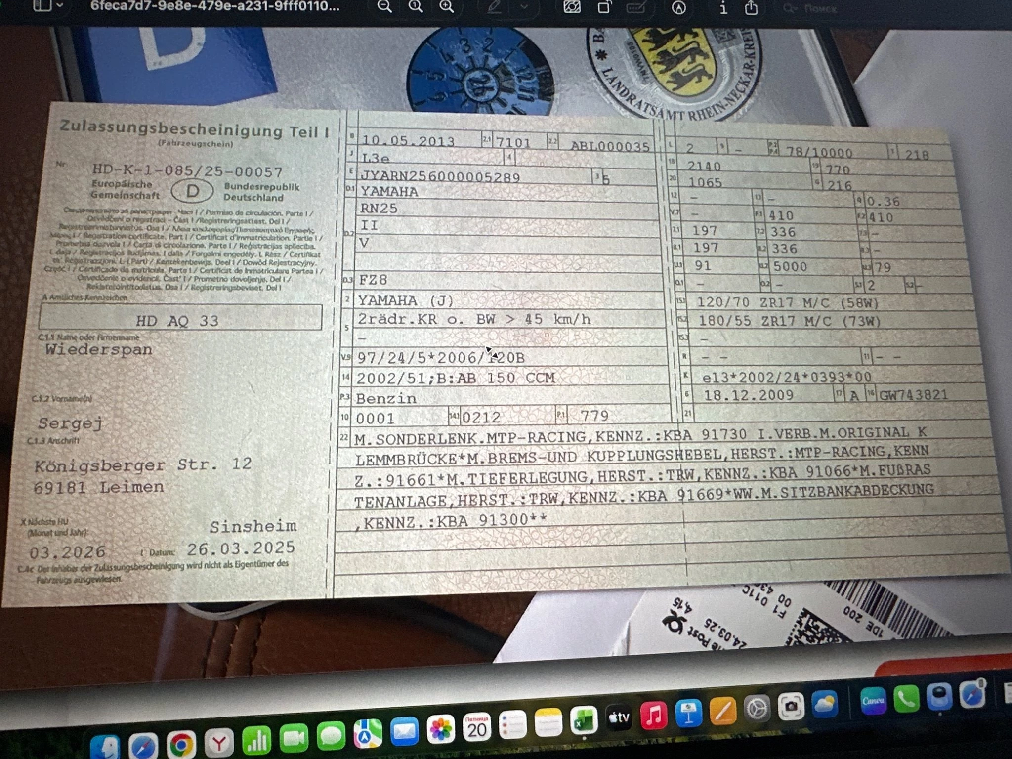 amaha FZ8 WGP 50th AnniversaryEingetragene Umbauten: