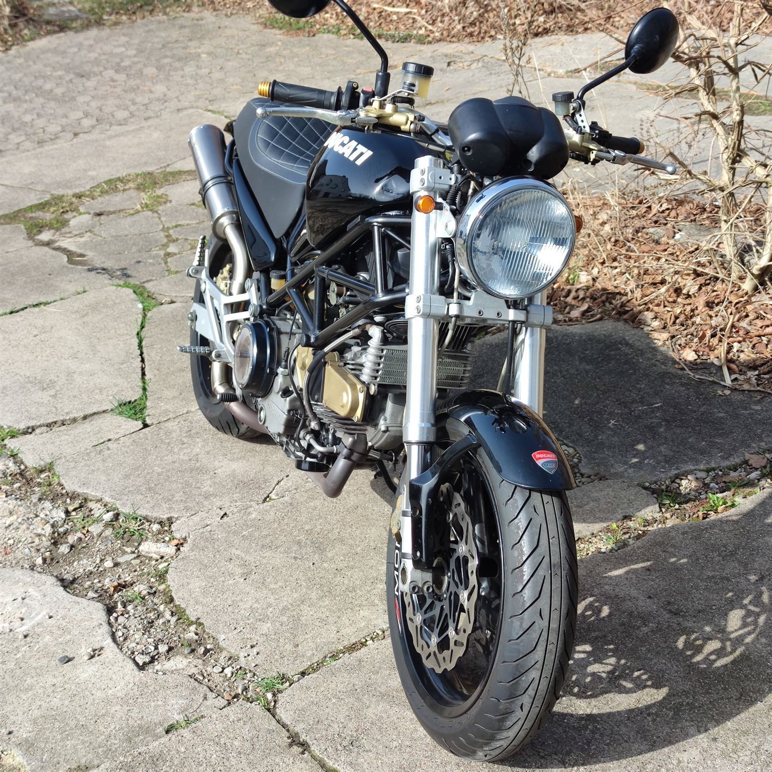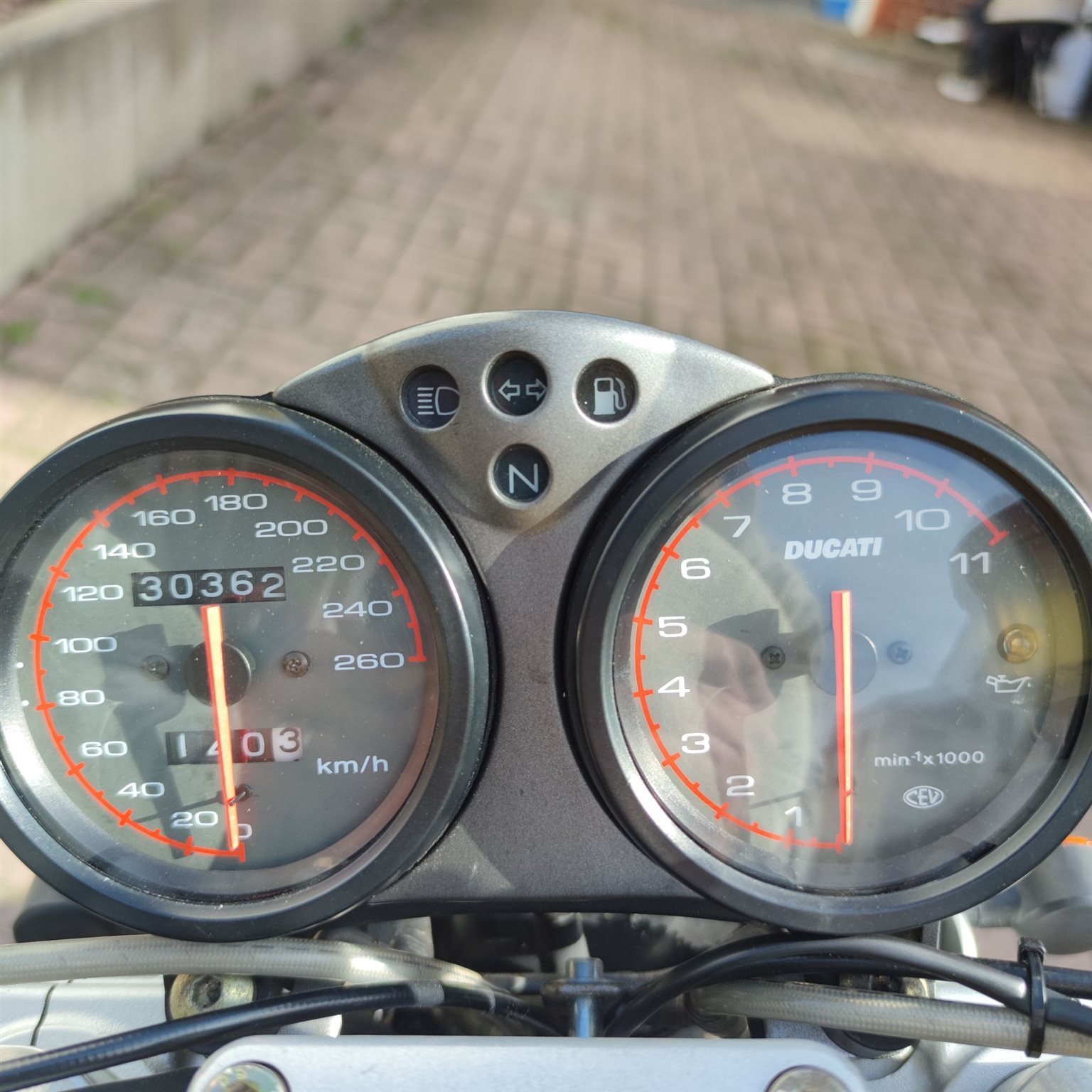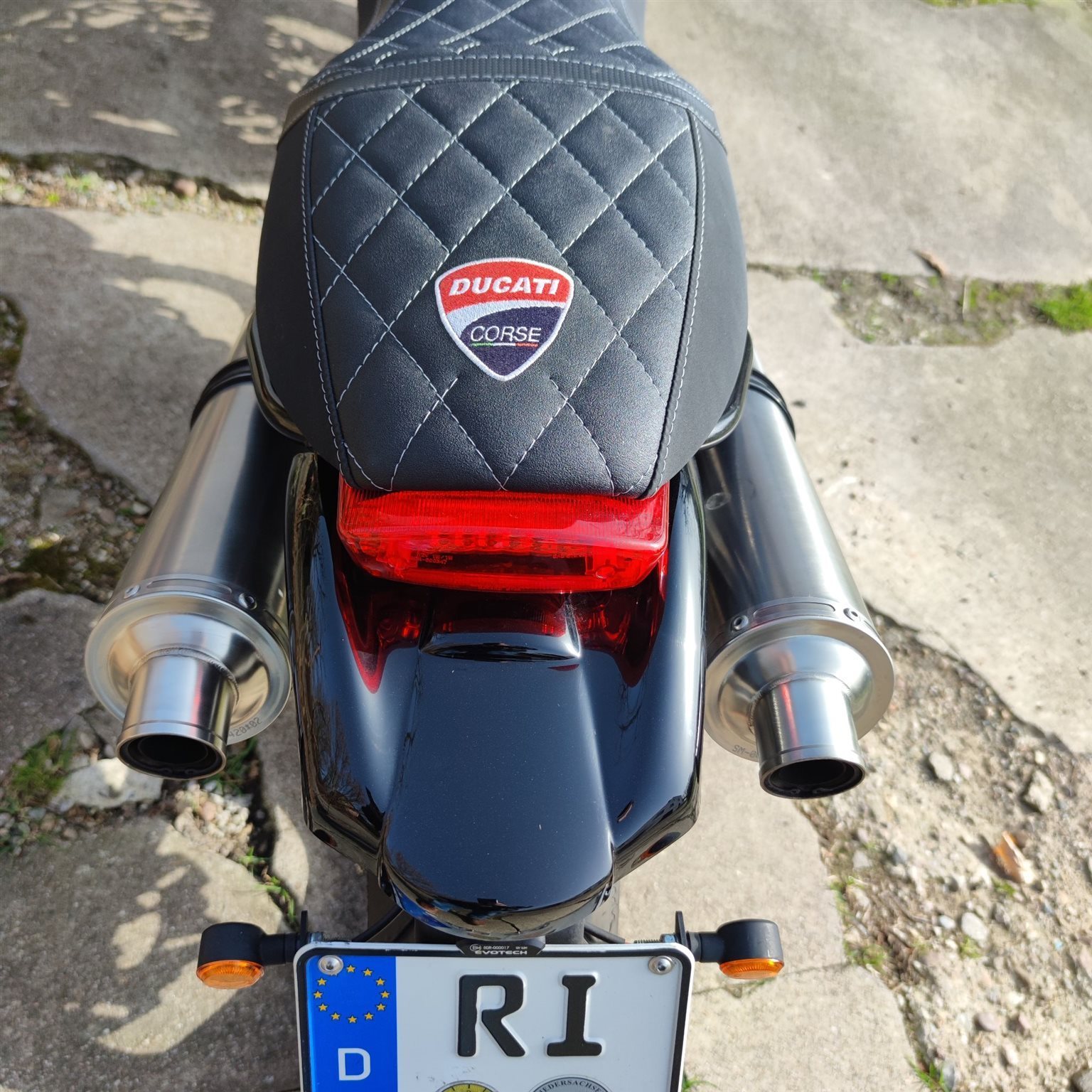 Biete meine Monster 900 i.e. (letzte Baureihe der Ur-Monster) aus gesundheitlichen Gründen zum Verkauf. Ich habe die Duc im Februar 2022 mit einem Kilometerstand von 23.800 km erworben. Folgende Umbauten bzw. Servicearbeiten wurden seit dem erledigt: 2022: hochgelegte SIL-Motor-Abgasanlage (e-Nr) verbaut (amtlicher Sound); Desmo-Service , Zahnriemen erneuert und 2 neue Pirellis Diablo Rosso II montiert. 2023: Kupplung komplett und Batterie erneuert. 2024: Sitzbank wurde neu aufgepolstert und bezogen; 2025: Zahnriemen und sämtl. Spannrollen erneuert; 3 neue Bremsscheiben mit Belägen; Öldruckschalter, Hauptbremszylinder und Bremslichtschalter getauscht, 2 Pirellis Angel GT II;
