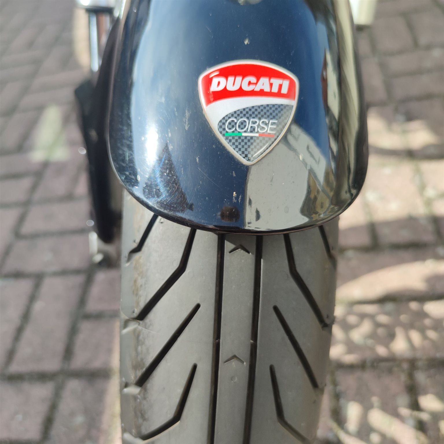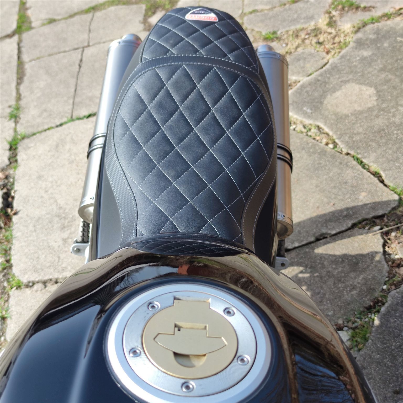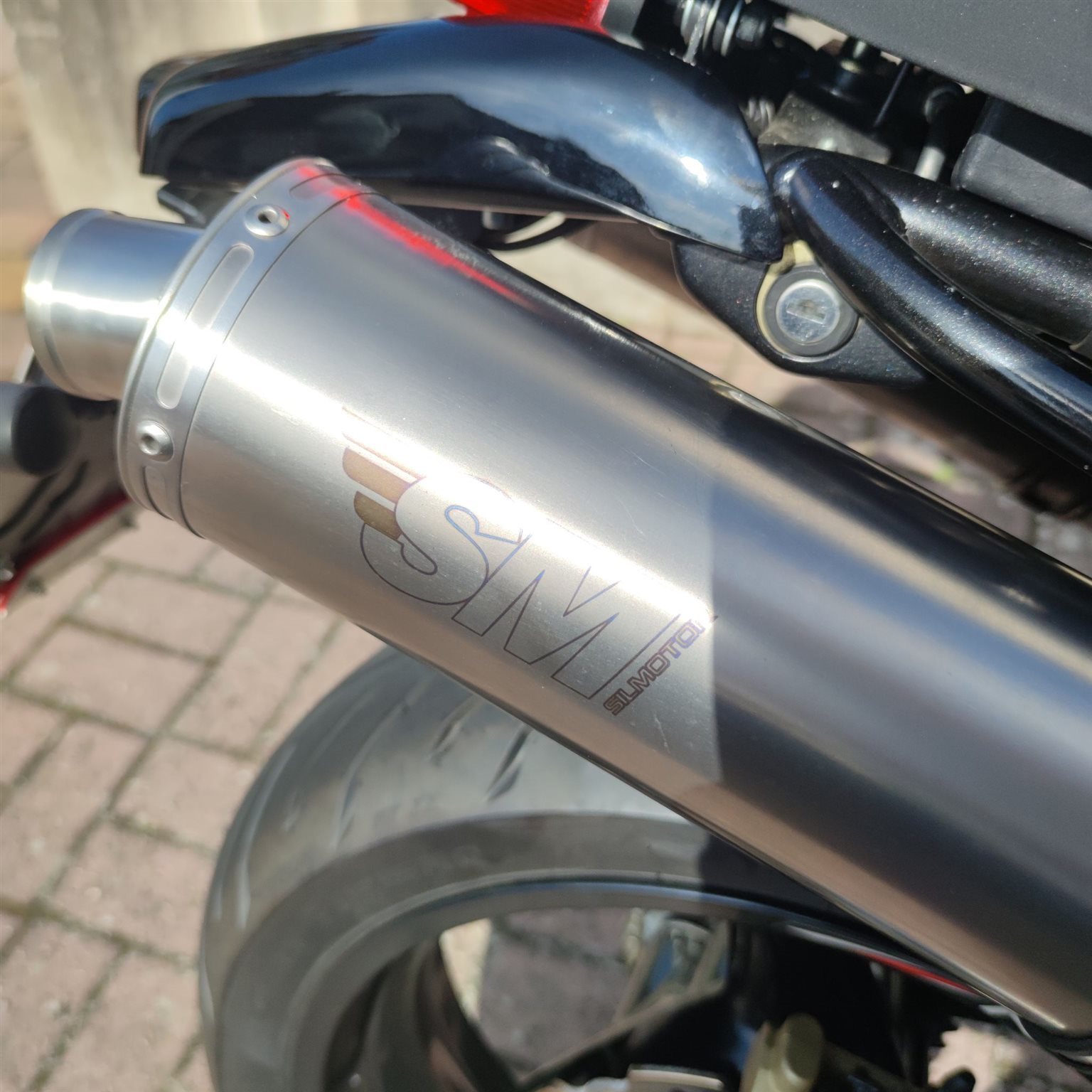 Biete meine Monster 900 i.e. (letzte Baureihe der Ur-Monster) aus gesundheitlichen Gründen zum Verkauf. Ich habe die Duc im Februar 2022 mit einem Kilometerstand von 23.800 km erworben. Folgende Umbauten bzw. Servicearbeiten wurden seit dem erledigt: 2022: hochgelegte SIL-Motor-Abgasanlage (e-Nr) verbaut (amtlicher Sound); Desmo-Service , Zahnriemen erneuert und 2 neue Pirellis Diablo Rosso II montiert. 2023: Kupplung komplett und Batterie erneuert. 2024: Sitzbank wurde neu aufgepolstert und bezogen; 2025: Zahnriemen und sämtl. Spannrollen erneuert; 3 neue Bremsscheiben mit Belägen; Öldruckschalter, Hauptbremszylinder und Bremslichtschalter getauscht, 2 Pirellis Angel GT II;