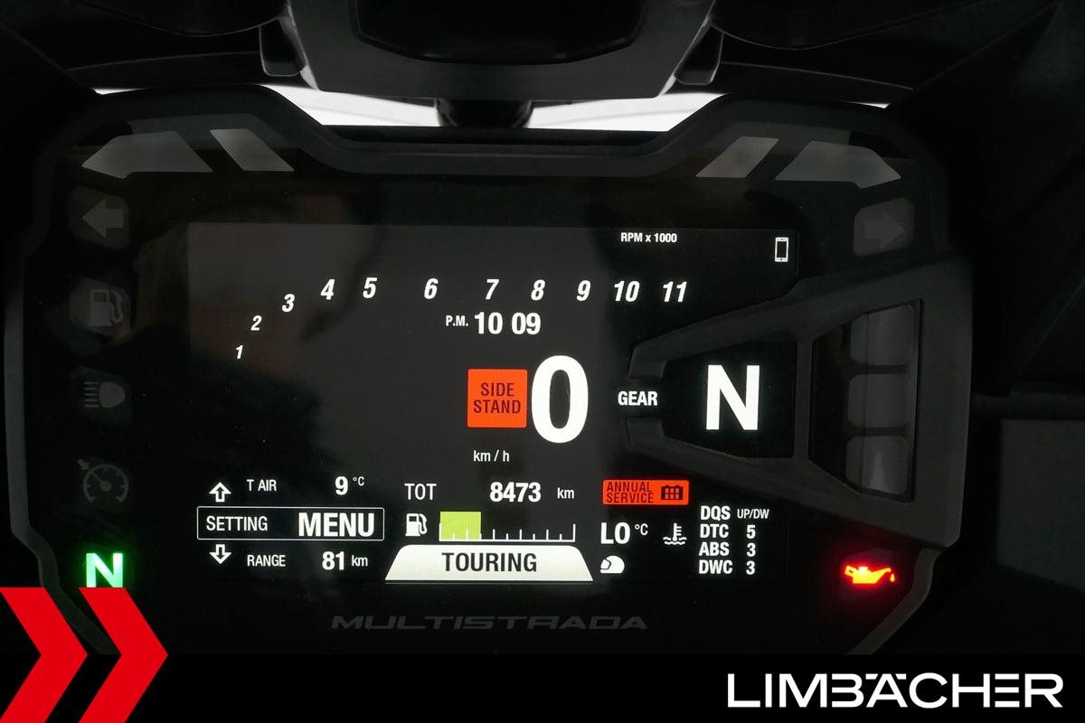 Eine Ducati Multistrada 1260 Enduro aus zweiter Hand in gepflegtem Zustand u.a. mit Schaltassistent und Wheelie-Control.