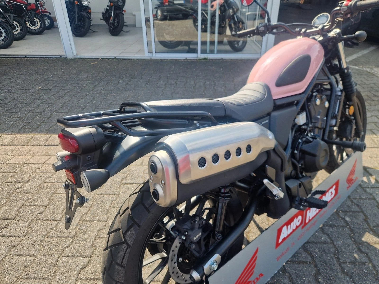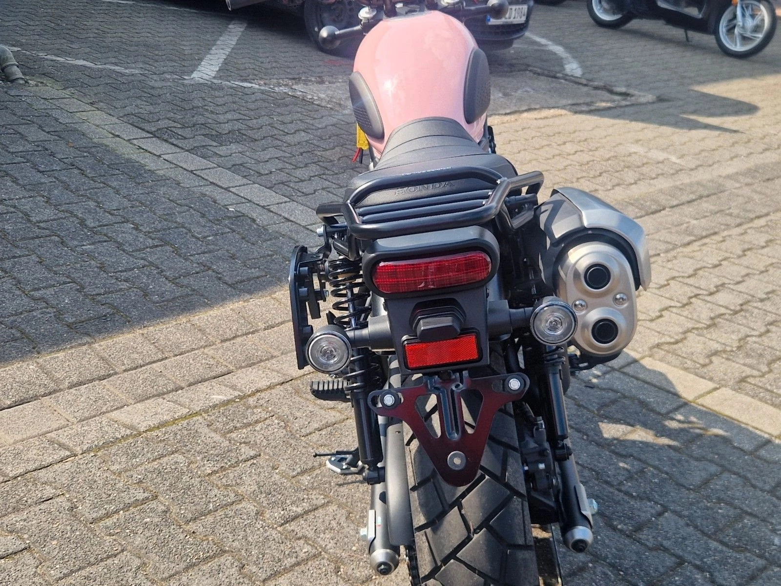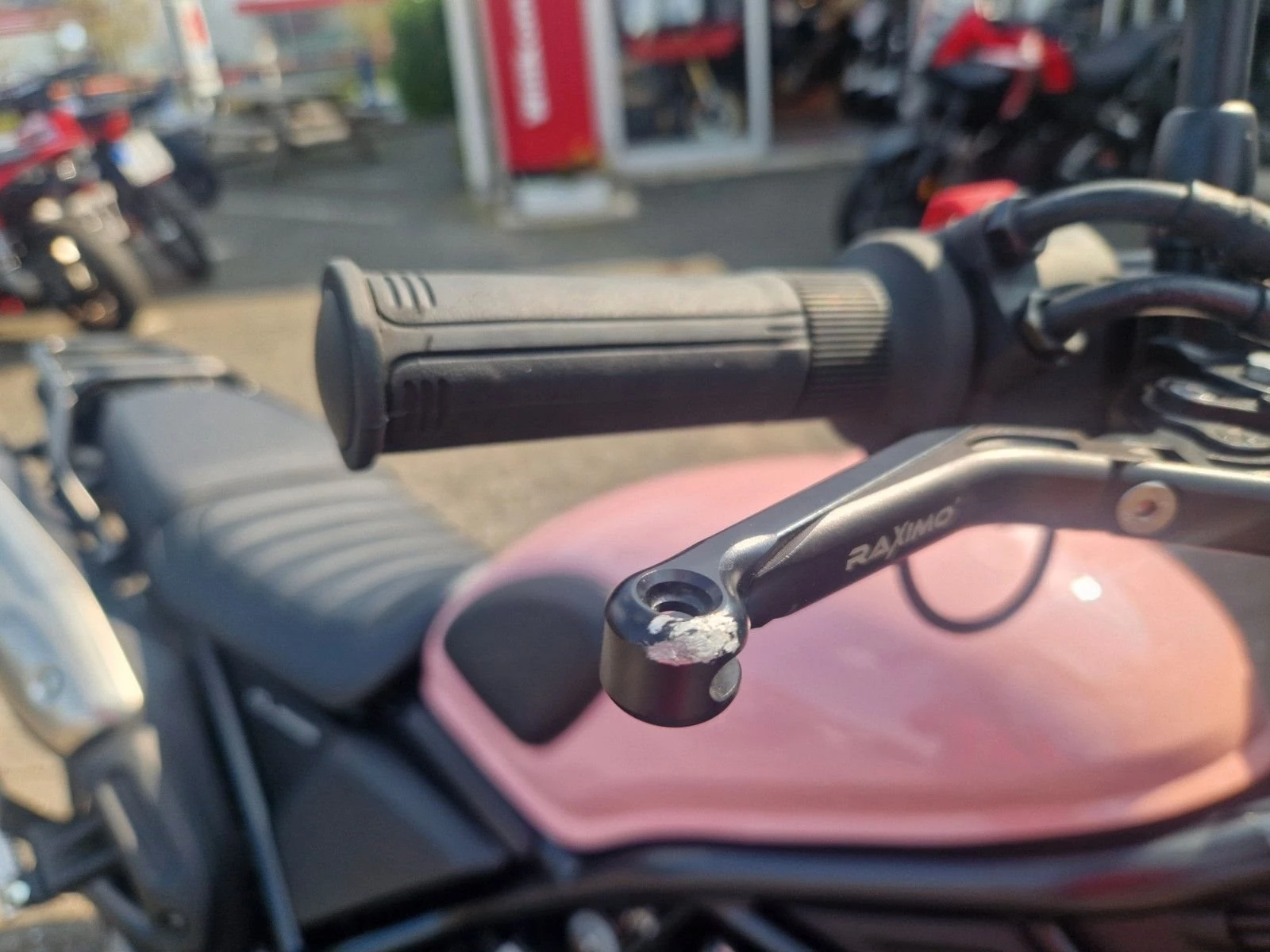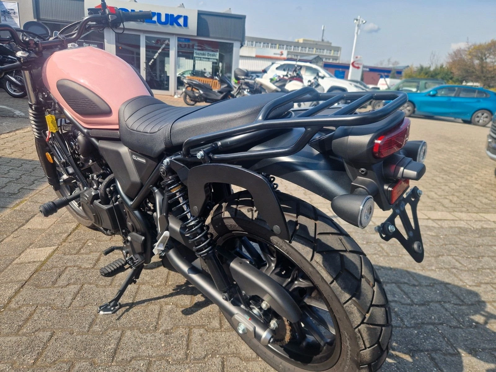 Der Tank wurde professionell in einem zarten Roséton lackiert.