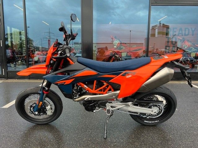 Die KTM 690 SMC R macht der Konkurrenz einen Strich durch die Rechnung und erweist sich als unangefochtener König in ihrer Klasse. Die KTM 690 SMC R bietet dem Fahrer ein agiles Handling, klassenbeste Leistung und eine fahrerorientierte Ergonomie und verkörpert den Begriff READY TO RACE mit 110% Hingabe an ihr Handwerk. Ob beim Rutschen in die Kurven, bei Power-Wheelies über Kuppen oder bei harten Sprüngen durch enge Bergpässe - der König der Supermoto für die Straße greift an.