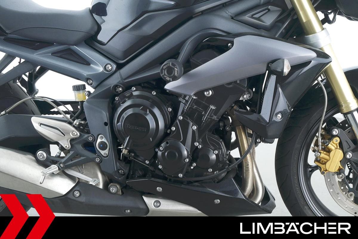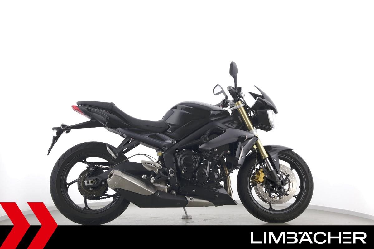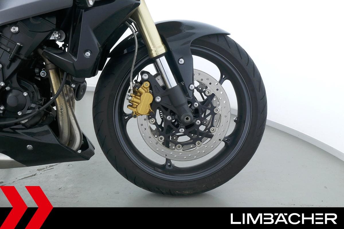 Eine Triumph Street Triple 675 in gepflegtem Zustand u.a. mit einer Tieferlegung sowie GSG-Moto-Sturzpads.