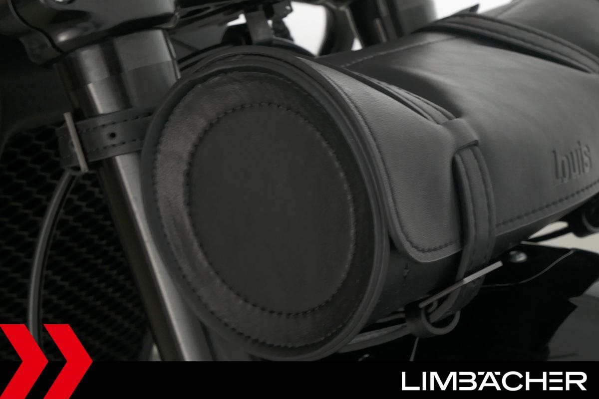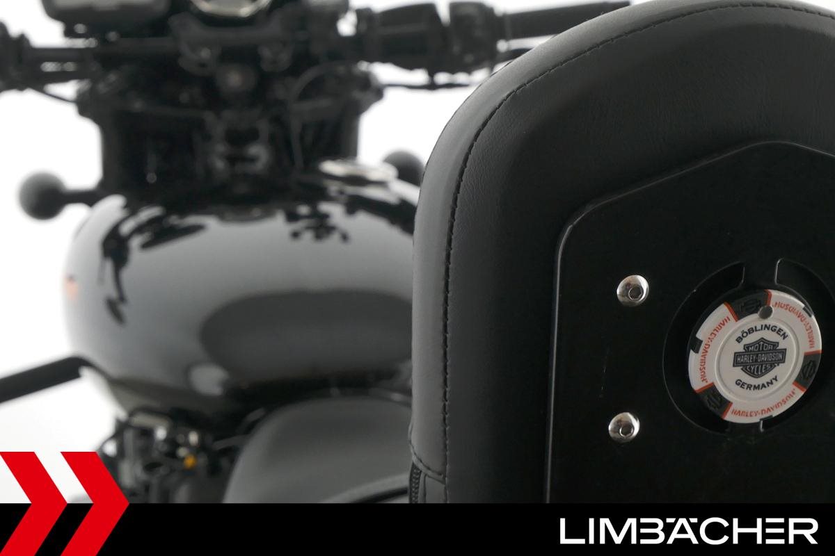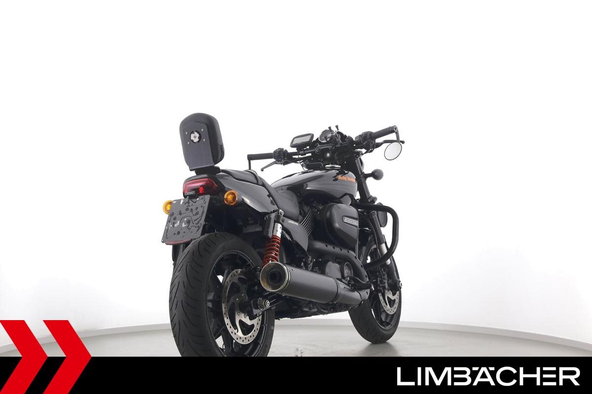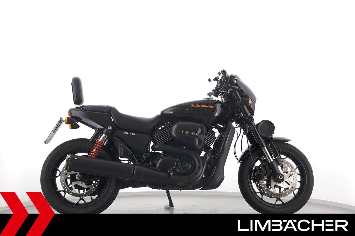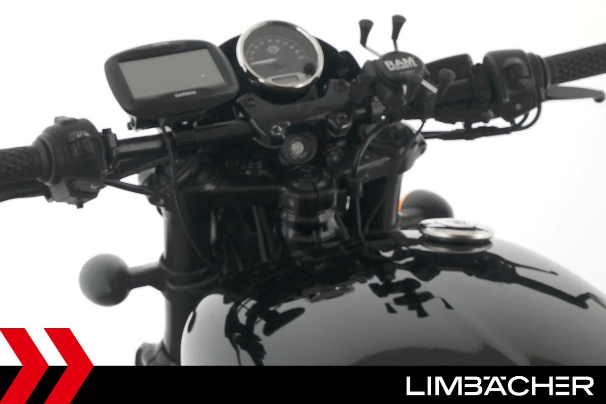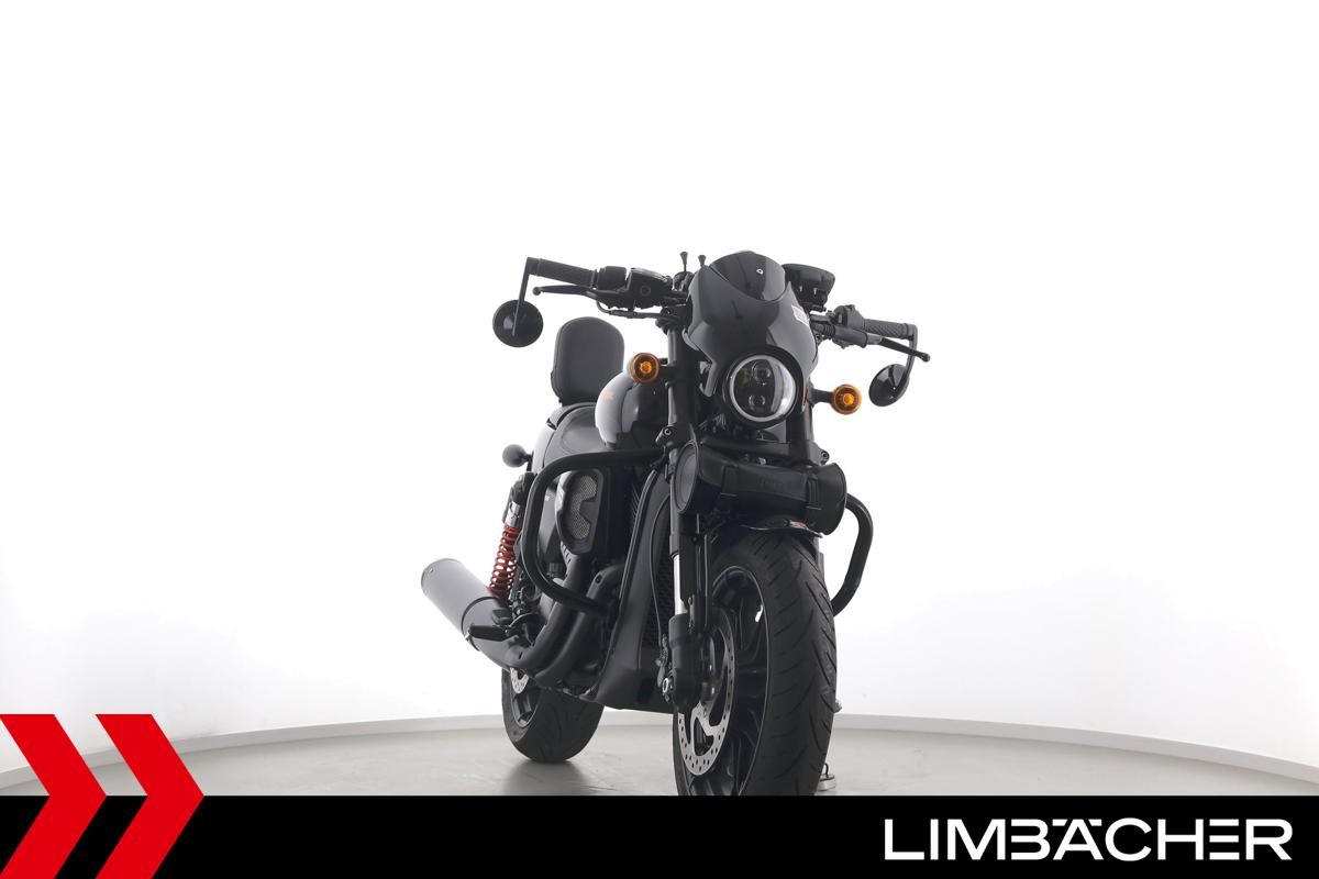 Eine scheckheftgepflegte Harley-Davidson Street Rod 750 in gepflegtem Zustand u.a. mit Screamin' Eagle Endschalldämpfer und Highsider-Lenkerendenspiegeln.