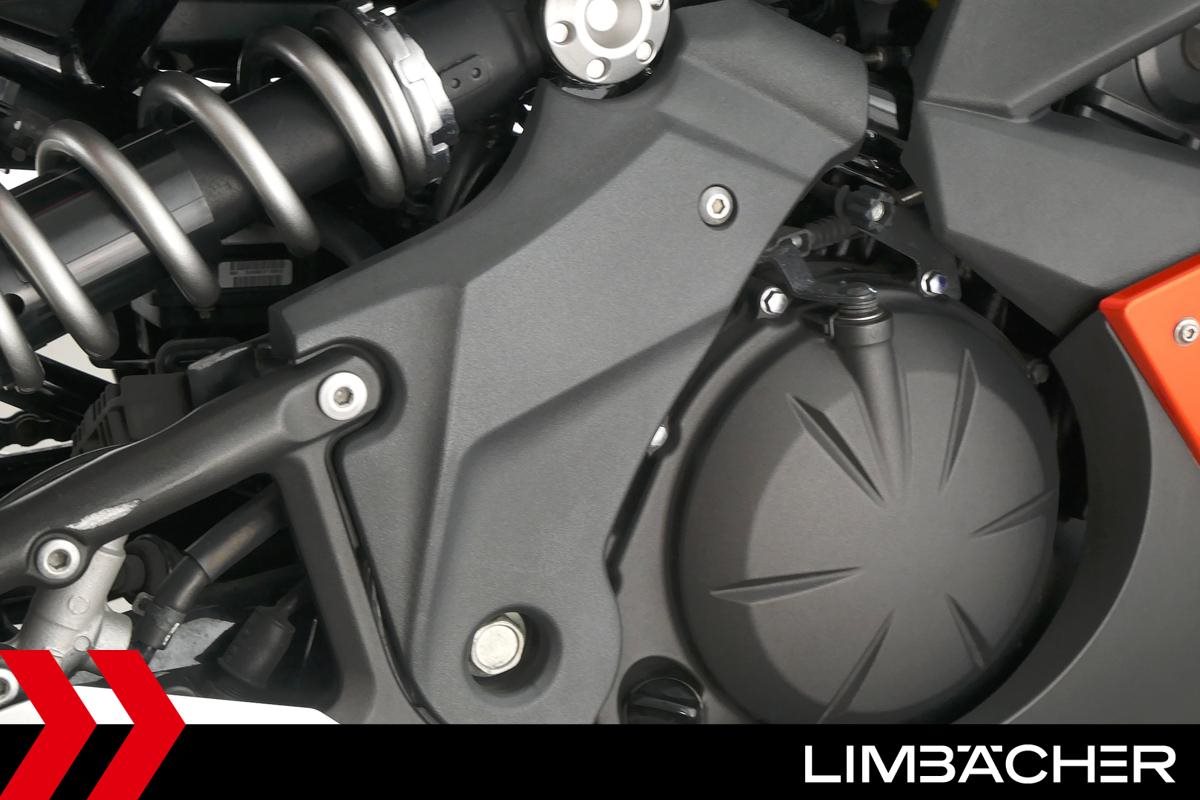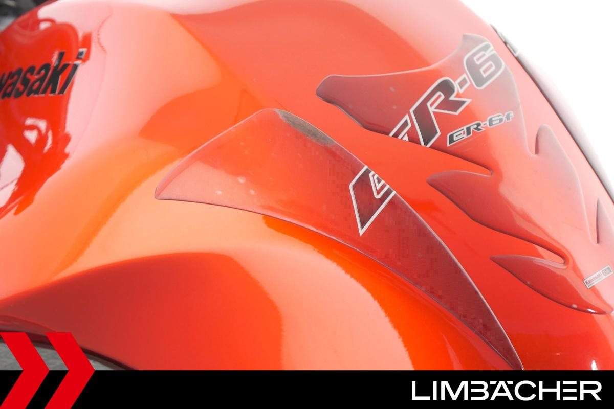 Eine Kawasaki ER-6f in gepflegtem Zustand mit Montageheber-Aufnahmen und Tankpad.