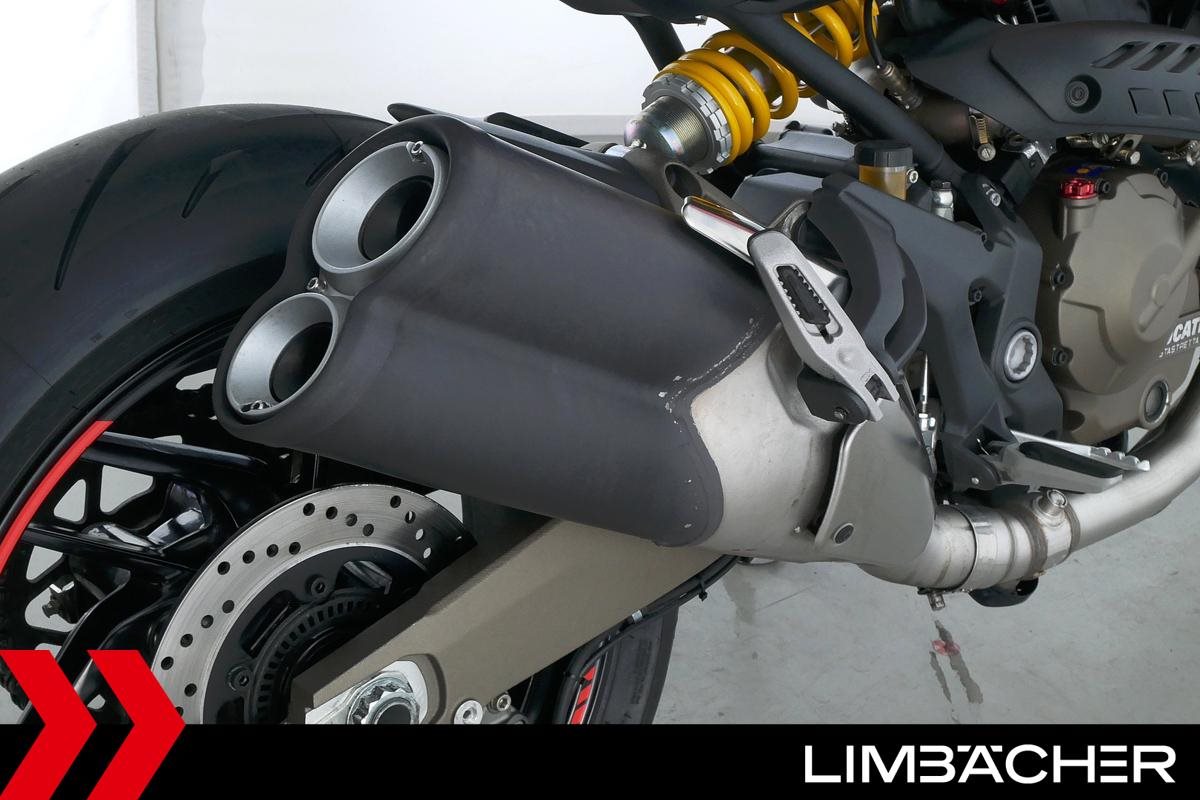 Eine scheckheftgepflegte Ducati Monster 821 Stripes aus erster Hand in gepflegtem Zustand u.a. mit kurzem Kennzeichenhalter sowie Ducati Performance LED-Blinkern.