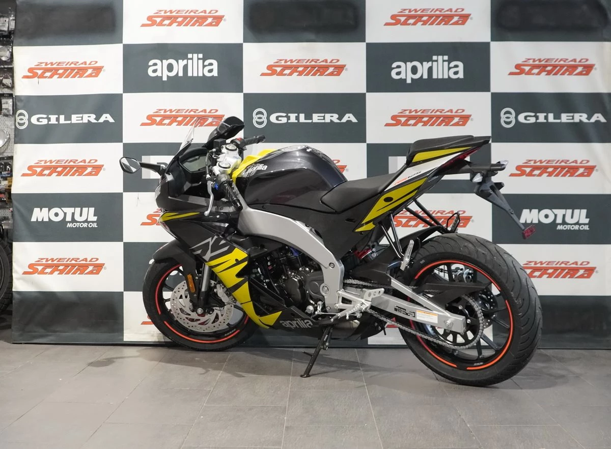 Die Aprilia RS 125 ist mit einem erstklassigen Motor ausgestattet: einen Einzylinder mit Euro 5+ Zulassung, Vierventil-Technik und Flüssigkeitskühlung - umweltfreundlich, ohne auf Spitzenleistung zu verzichten. Für ein sicheres und präzises Fahrgefühl arbeitet das Bremssystem perfekt mit dem Zweikanal-ABS zusammen, das mit einer Stoppie Control ausgestattet ist. Zudem ist die RS 125 serienmäßig mit einer deaktivierbaren Traktionskontrolle ausgestattet und für die Installation des elektronischen Quickshifters (optional erhältlich) vorbereitet, der blitzschnelle Gangwechsel ermöglicht.